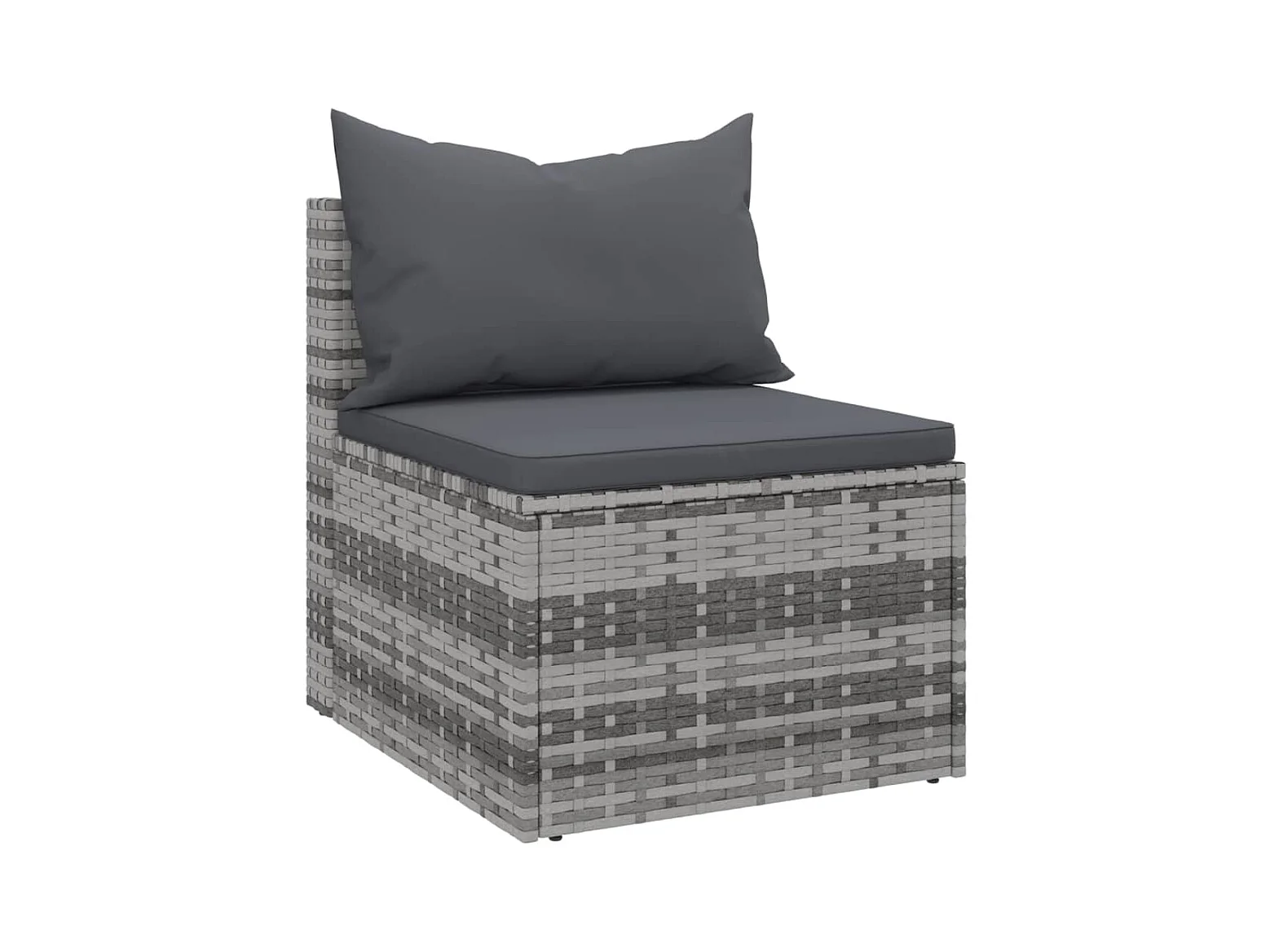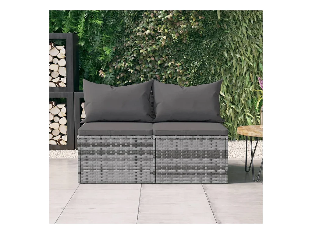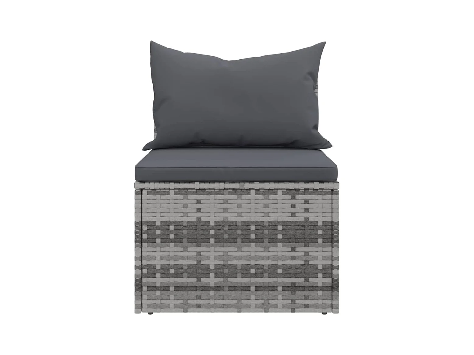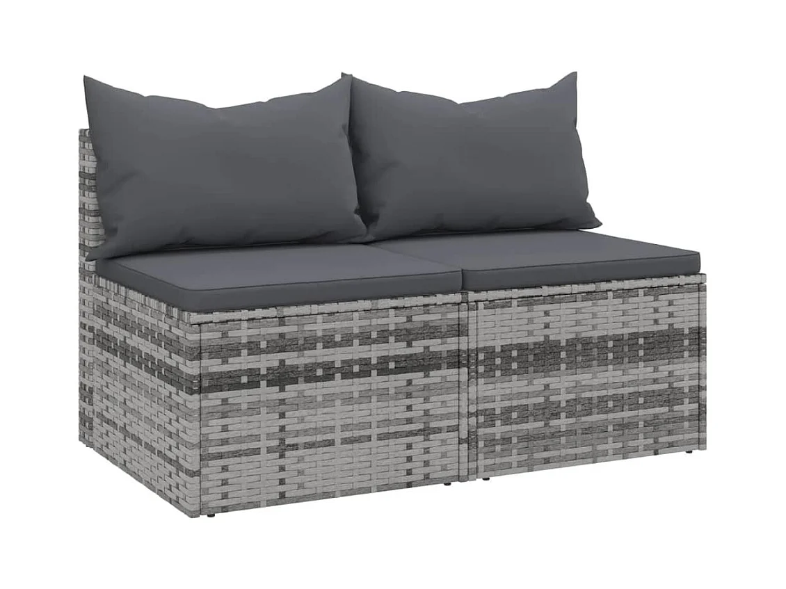 Tuinmiddenbank met kussens 2 st poly rattan grijs NL628772