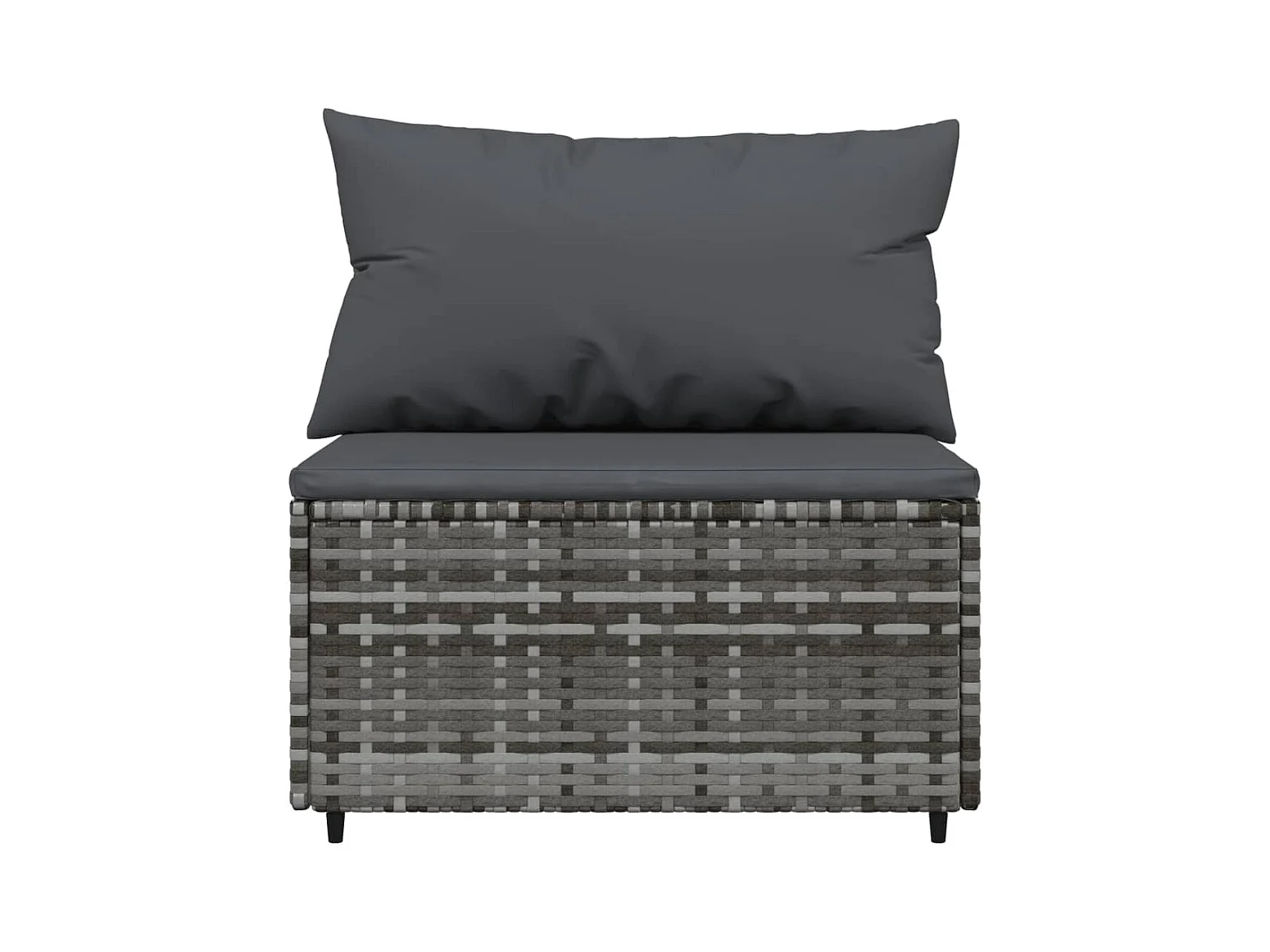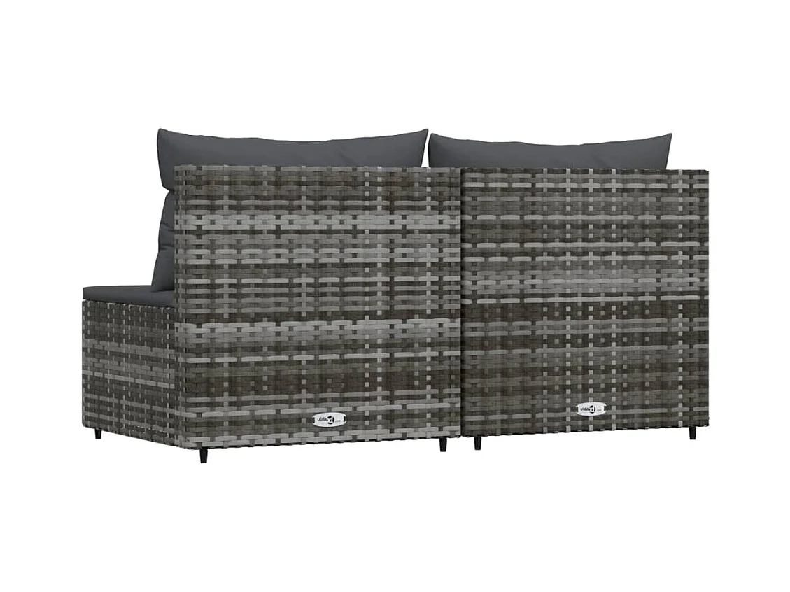 Tuinmiddenbank met kussens 2 st poly rattan grijs NL692549