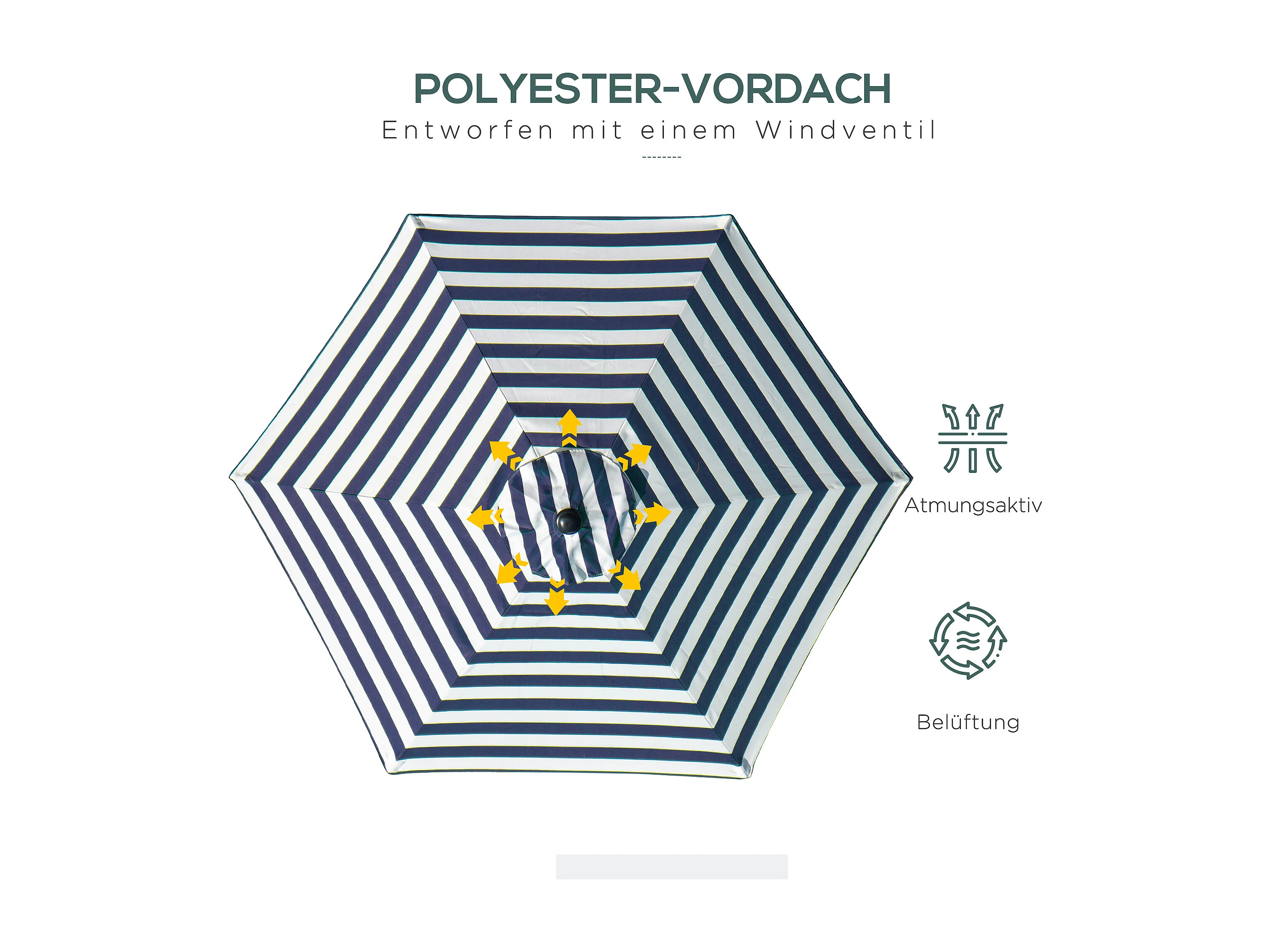 Tuinparasol met metalen frame, blauwe strepen, Ø230x216 cm, voor buitengebruik (230x230x216 cm)