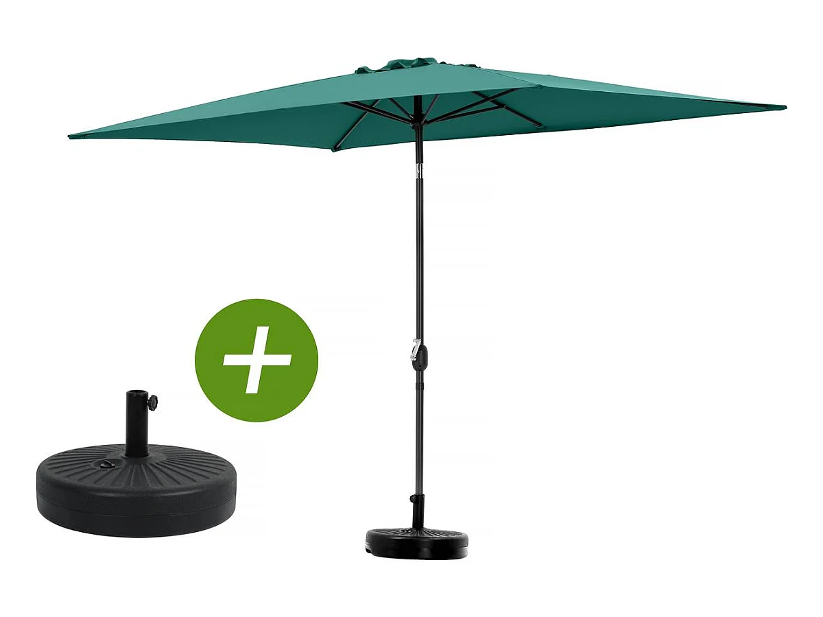 Tuinparasol "Sol 2" rechthoekig 2x3m groen met inbegrepen gewichtsplaten