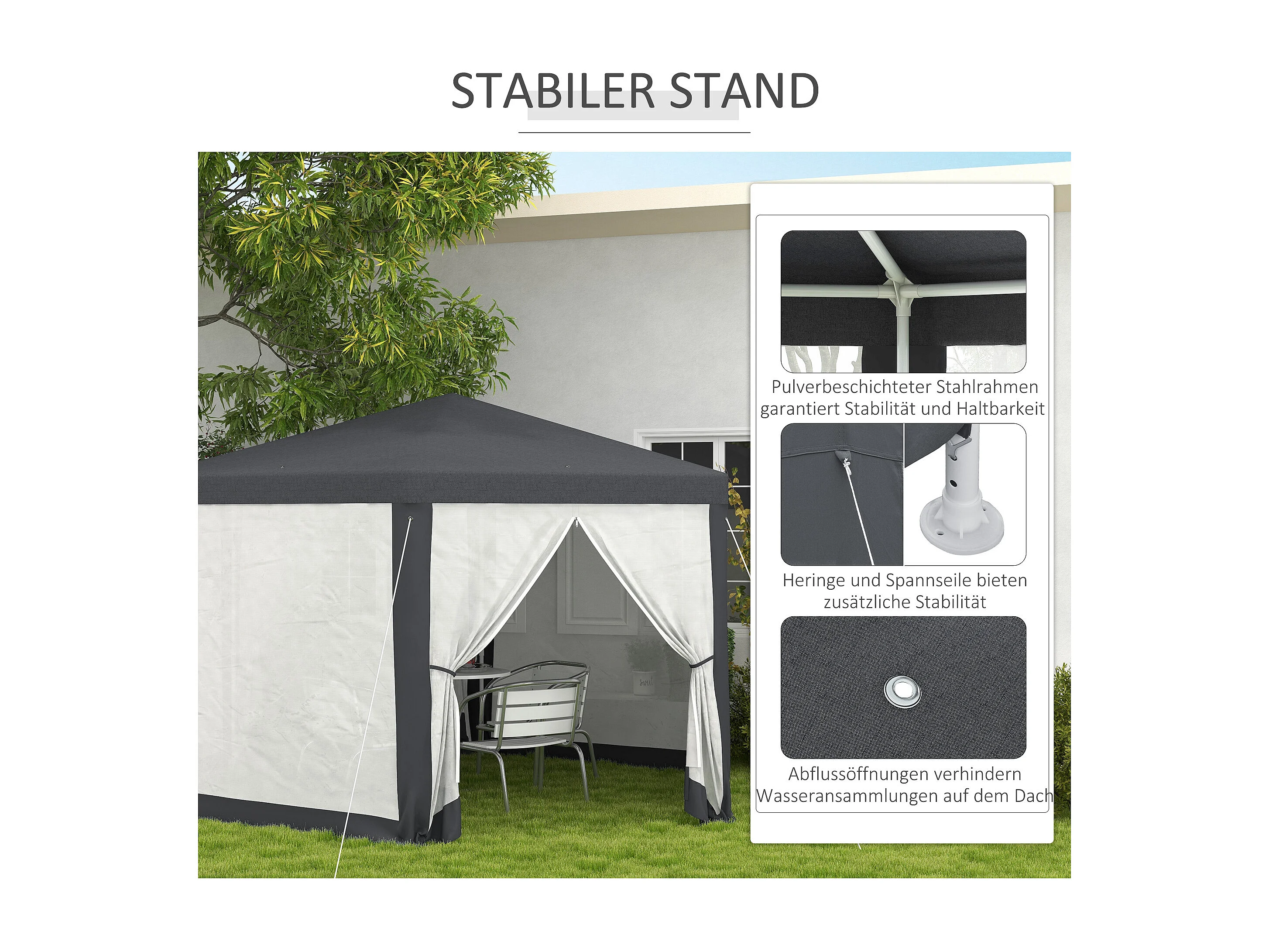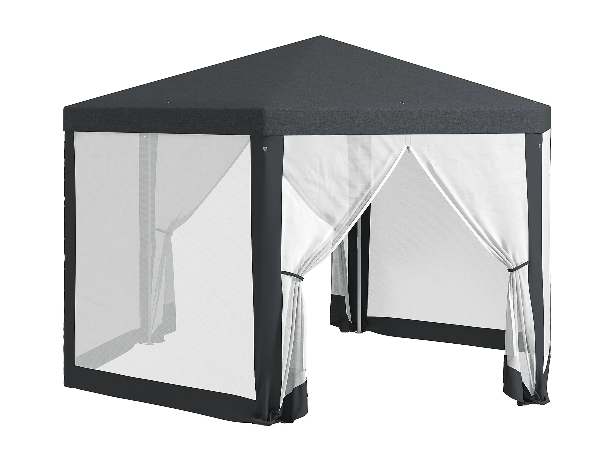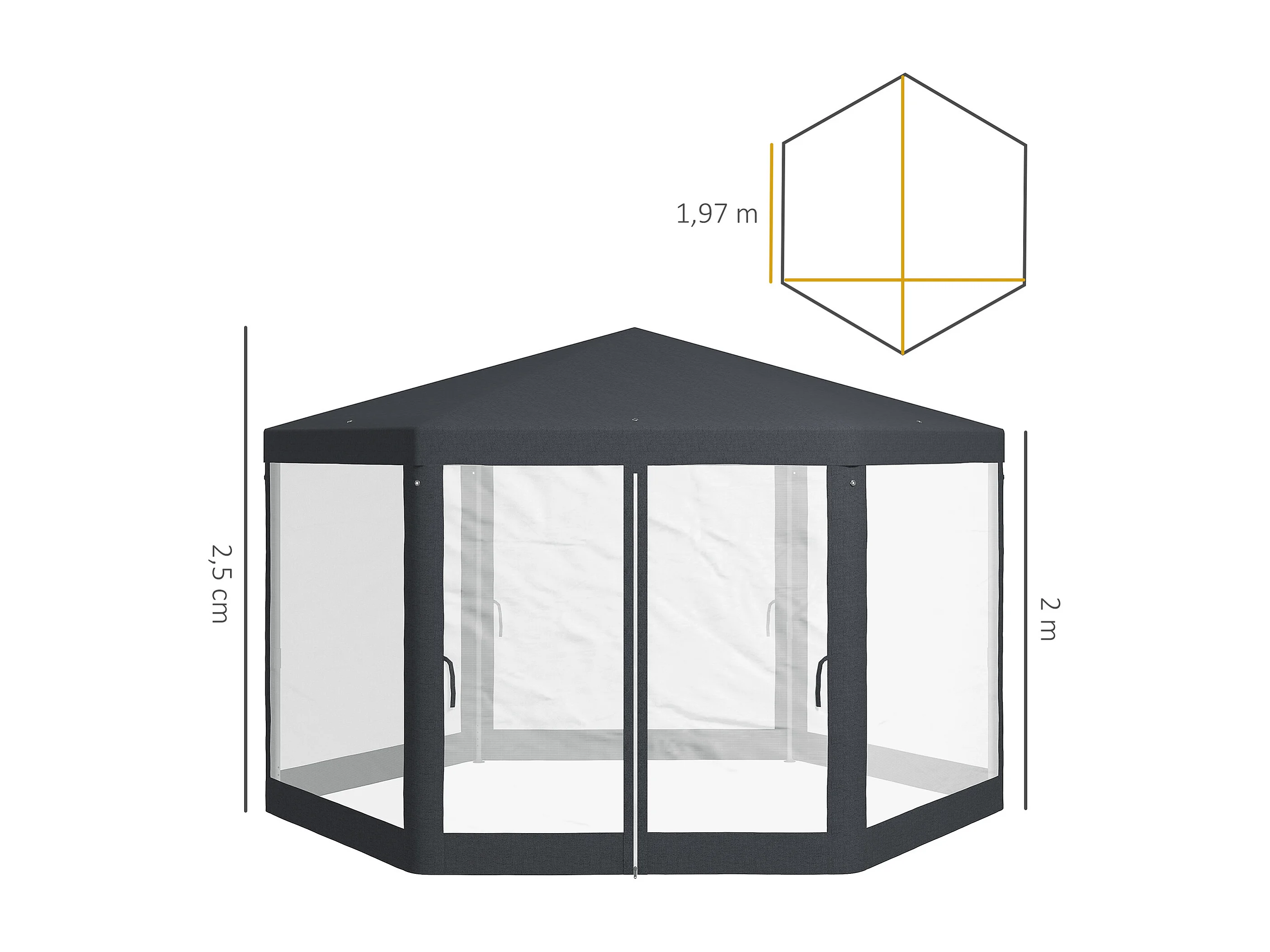 Tuinpaviljoen 4x4 m met klamboe, 6 zijden, frame van metaal en polyester, donkergrijs (394x341,2x250 cm)
