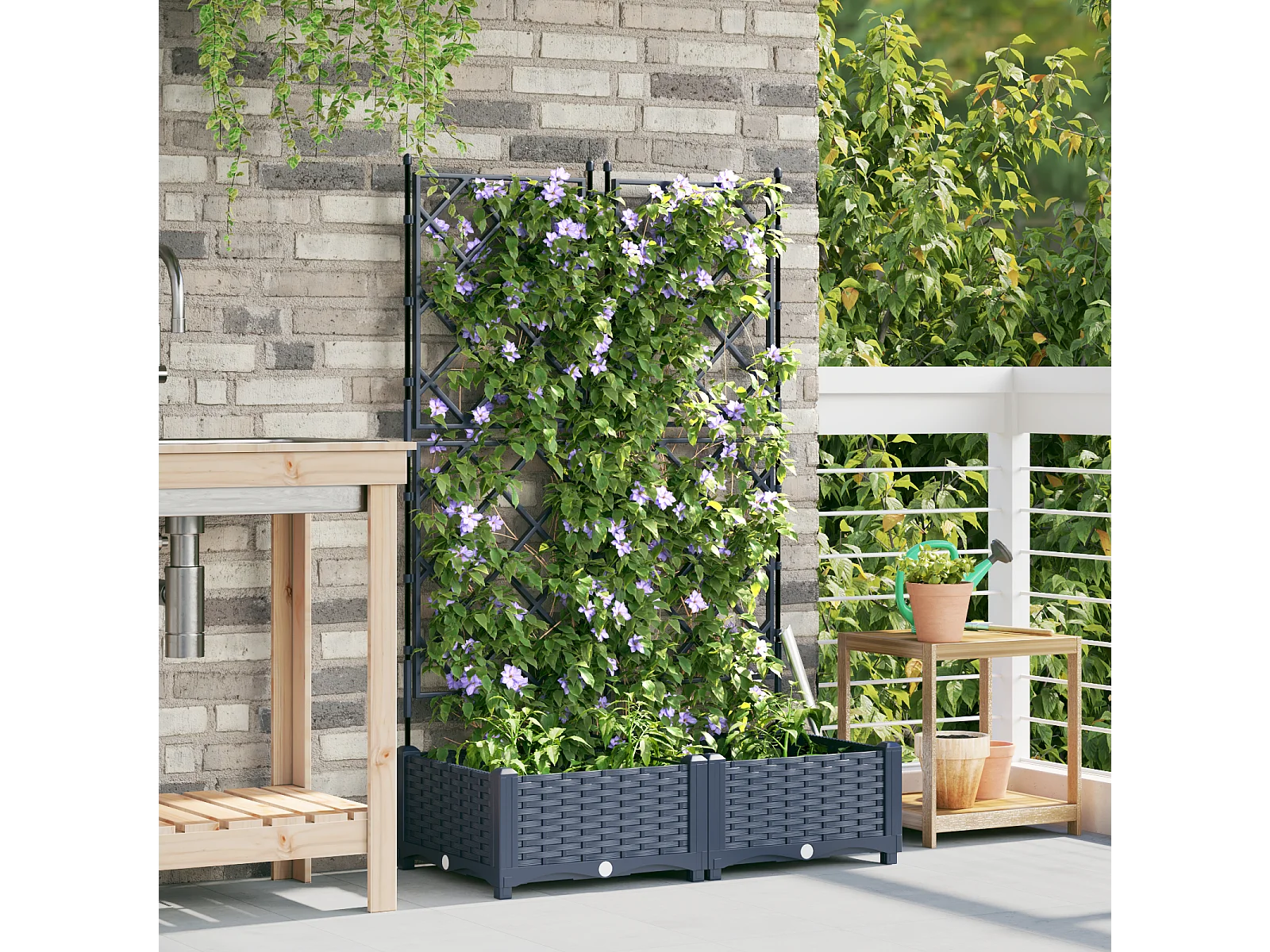 Plantenbak met trellis 2 stuks grijs 80x40x143 cm