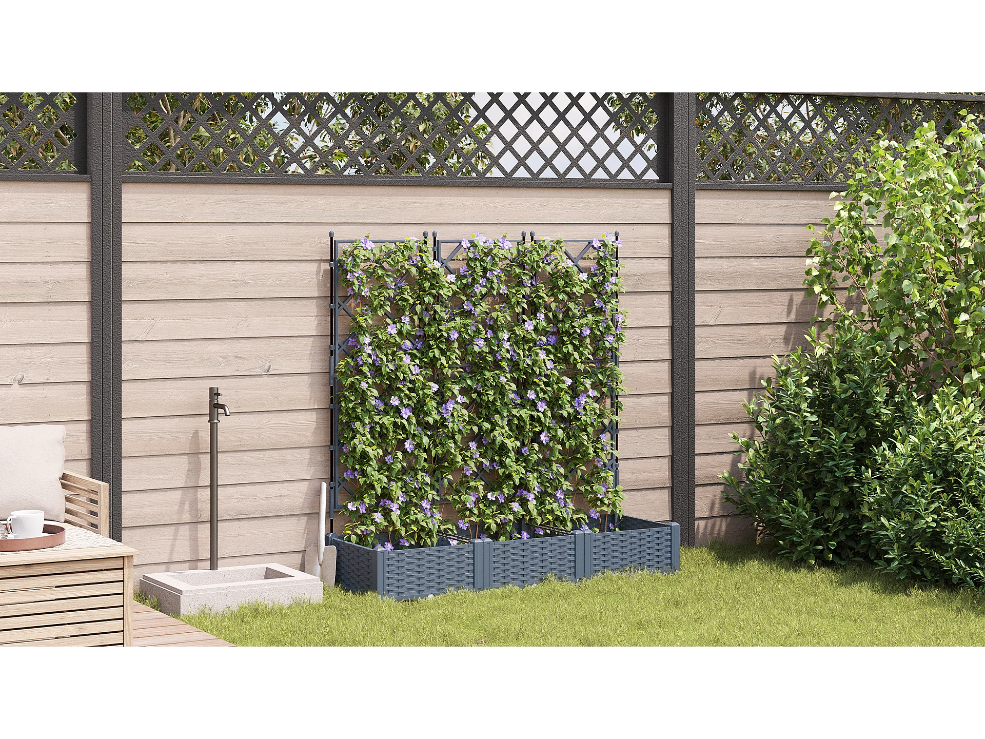 Tuinbak met trellis 3 stuks lichtgrijs 120x40x143 cm