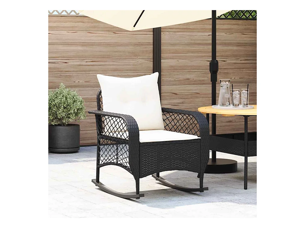 Tuinstoel met kussens verstelbaar poly rattan zwart