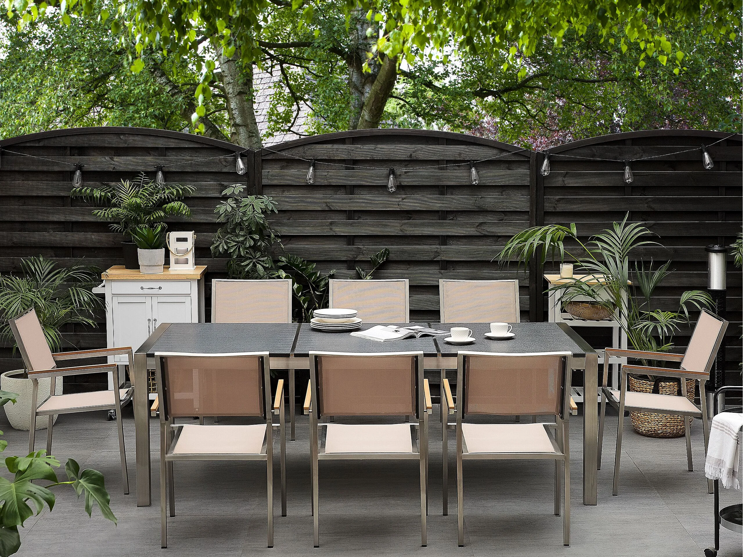 Tuinset 8-zitter GROSSETO Driedubbele plaat Graniet Gevlamd Zwart/beige