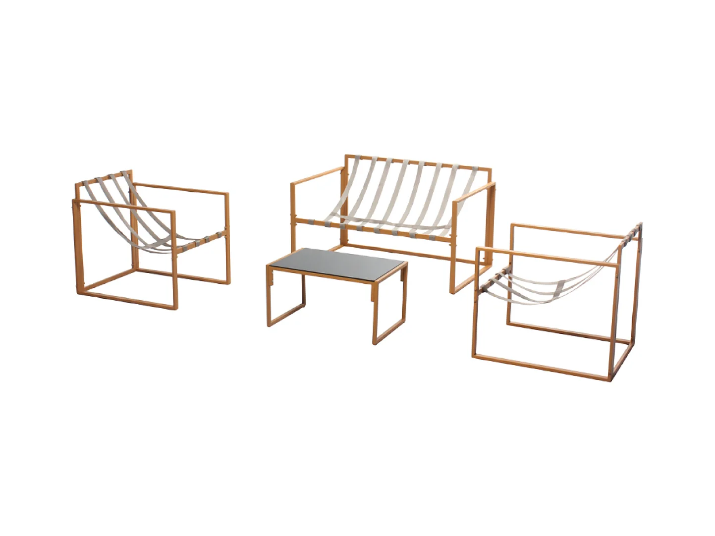 Hedendaagse tuinset 6 plaatsen bruin met beige kussens