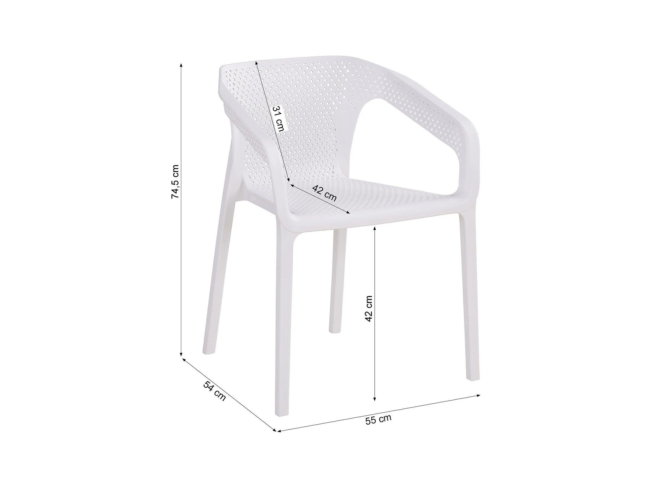 Tuinstoel 55x74,5x54 cm wit set van 6