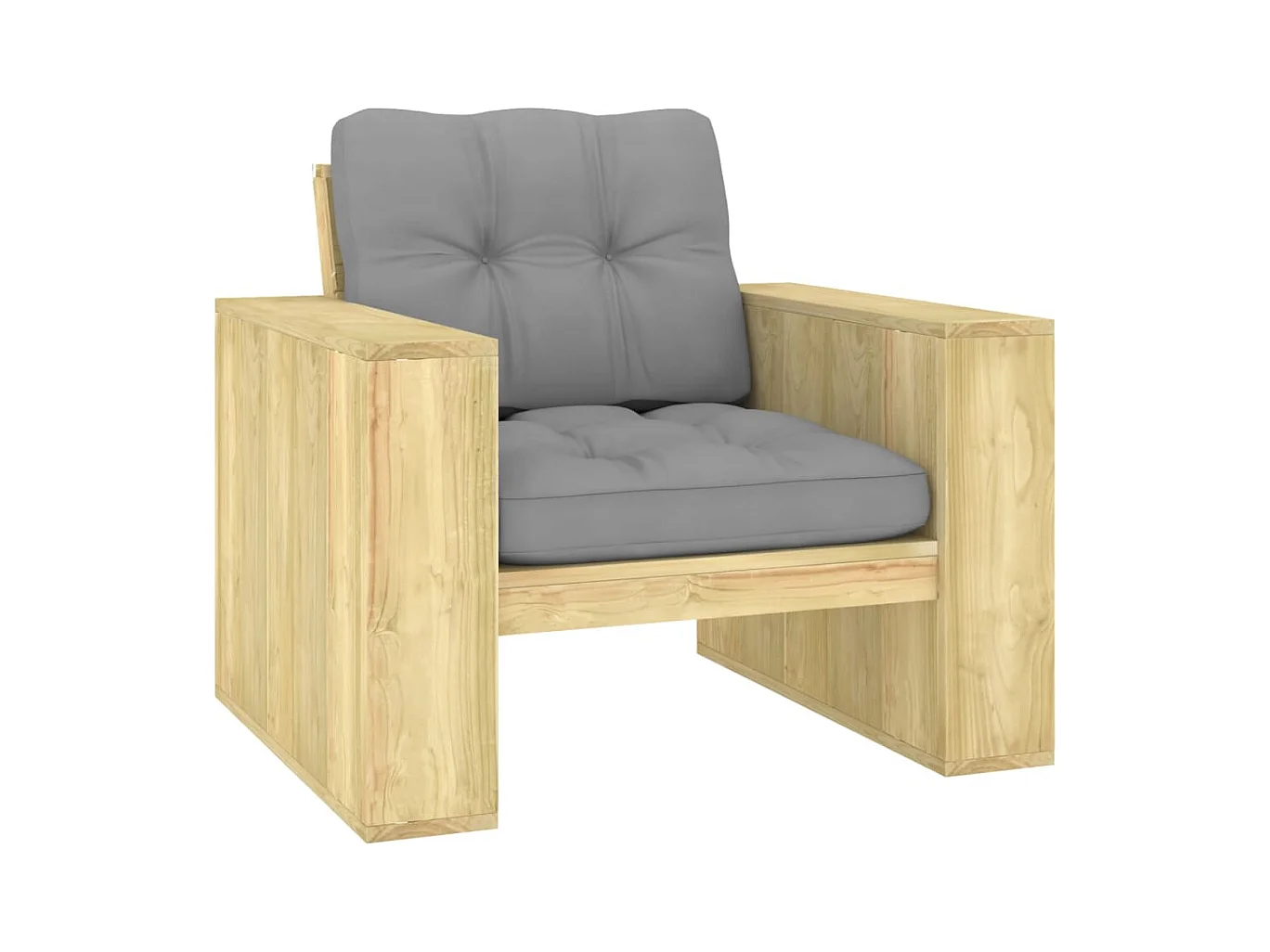 Tuinstoel met grijze kussens geïmpregneerd grenenhout