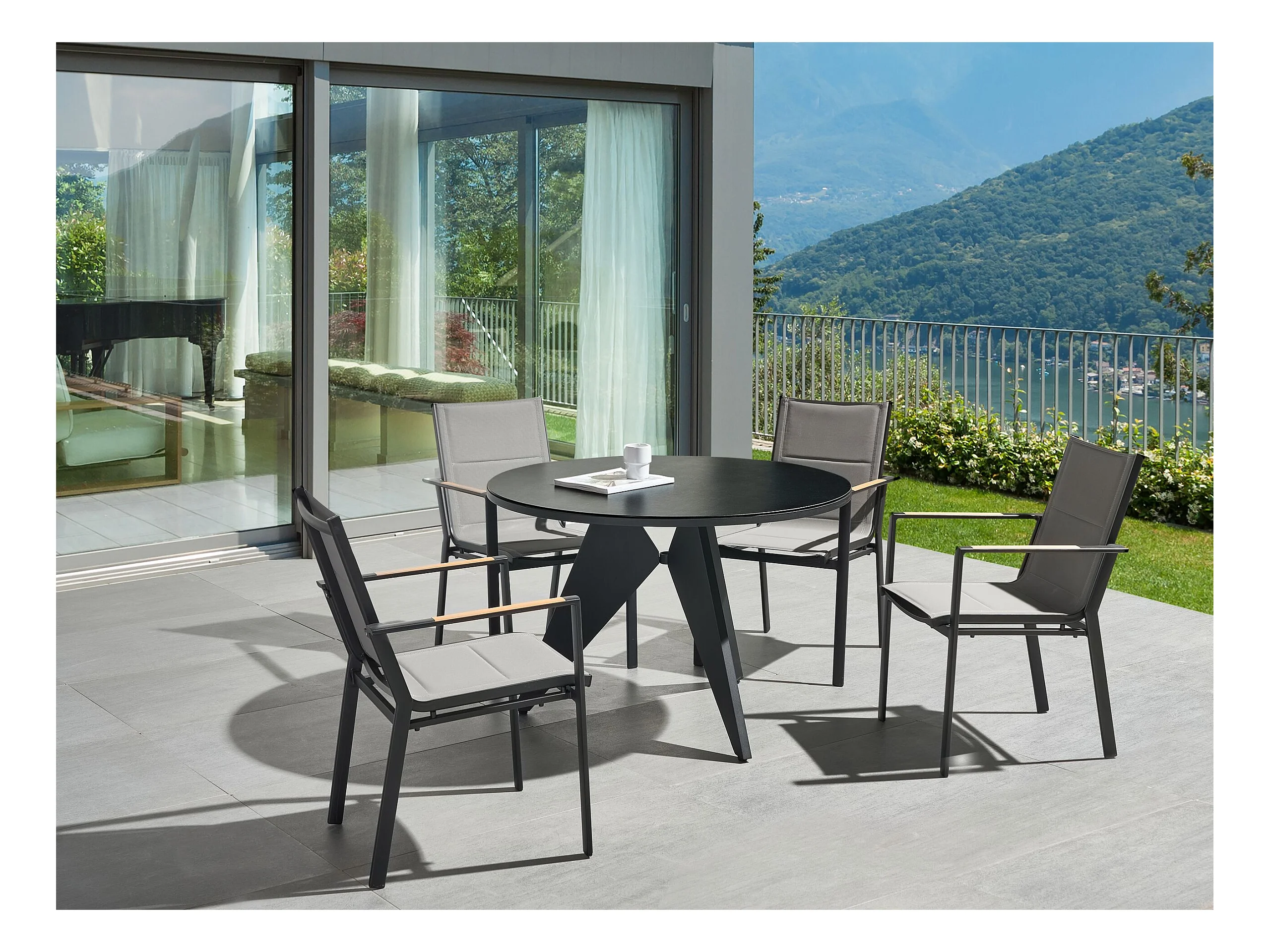 Set van 4 antraciet aluminium stoelen met armleuningen - VICTORIA