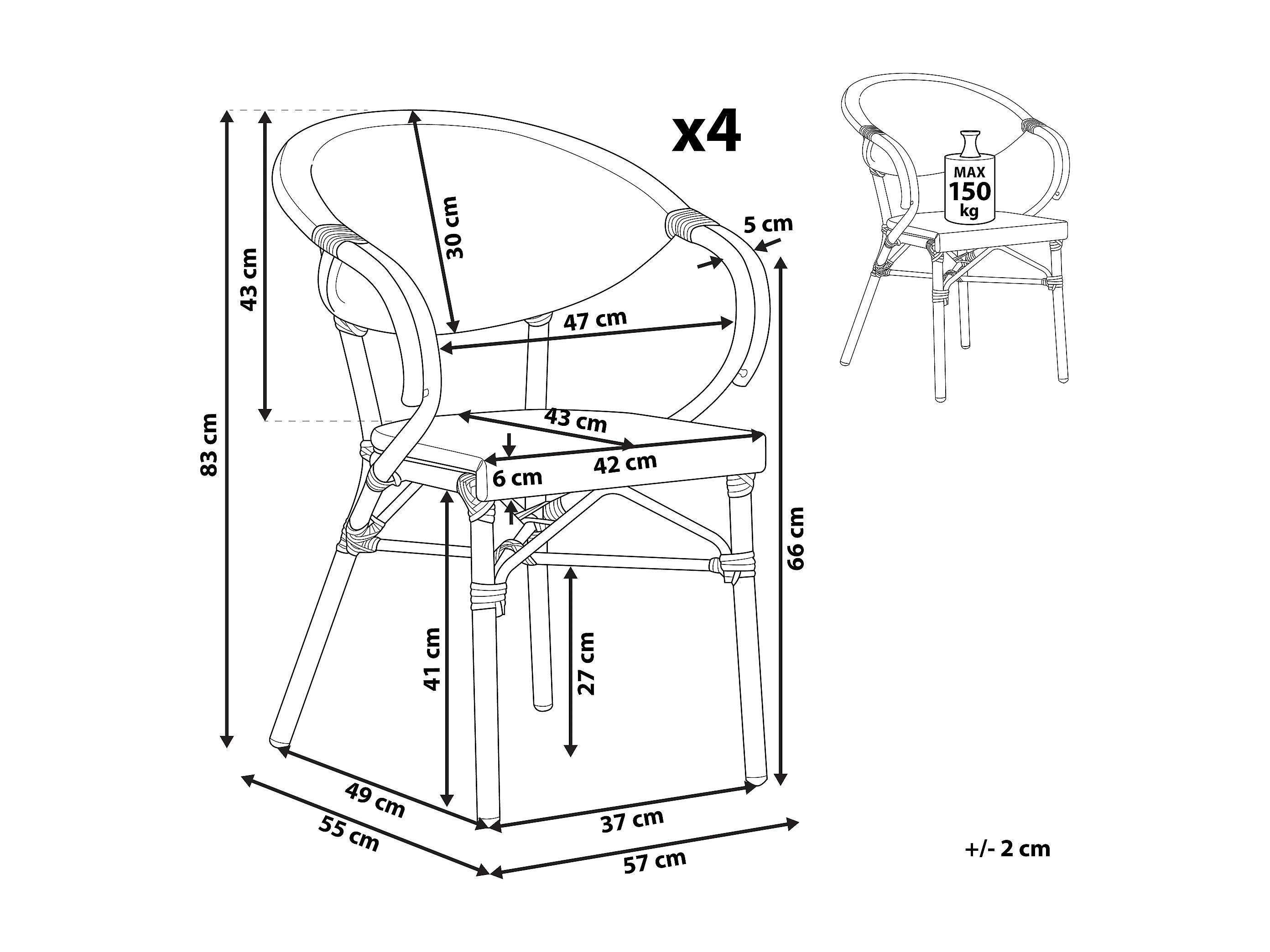 Set van 4 tuinstoelen CASPRI Metaal Zwart