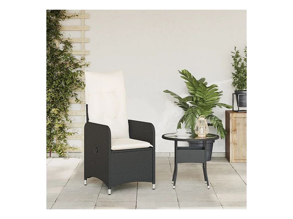 Verstelbare tuinstoel met bijzettafel poly rattan zwart