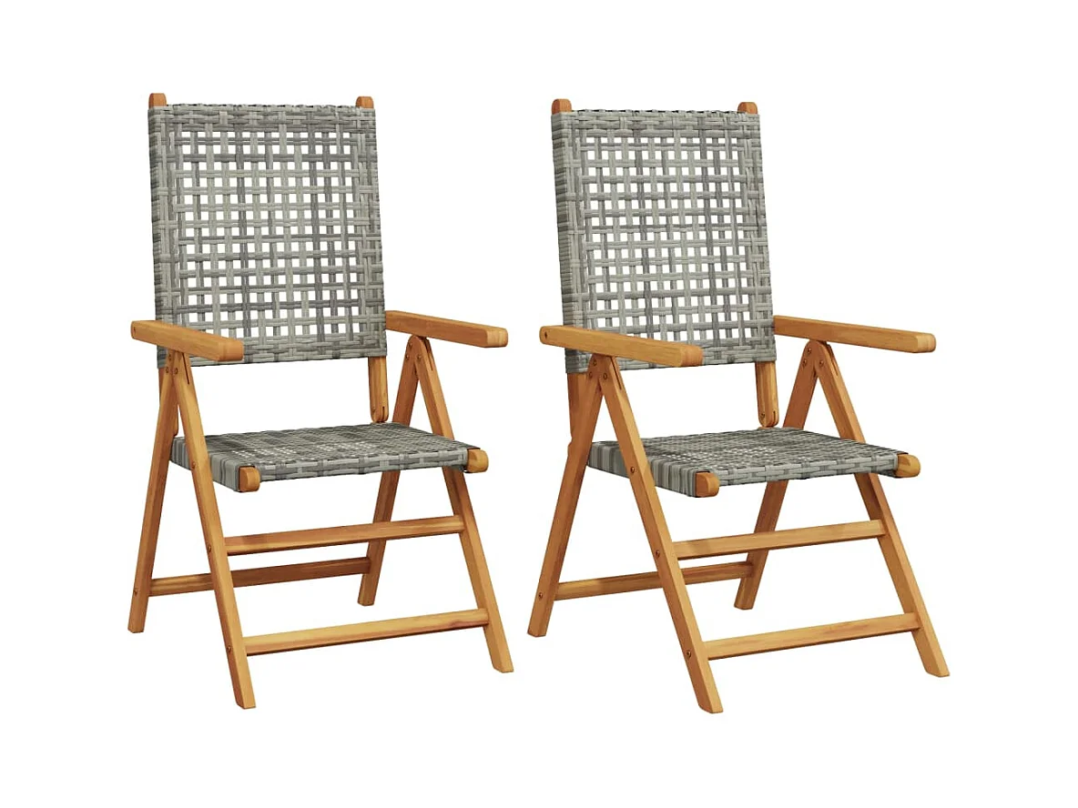 Tuinstoelen 2 st massief acaciahout en poly rattan grijs
