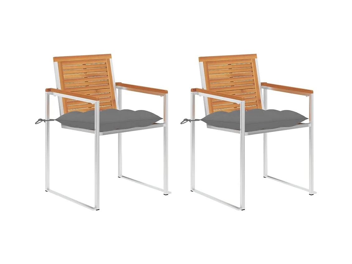 Tuinstoelen 2 st met kussens massief teakhout en staal