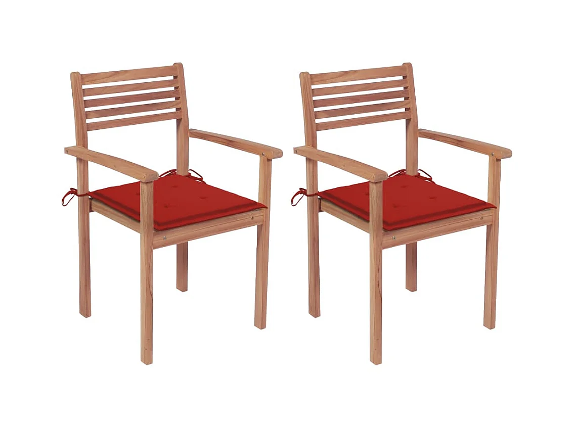 Tuinstoelen 2 st met rode kussens massief teakhout NL19391