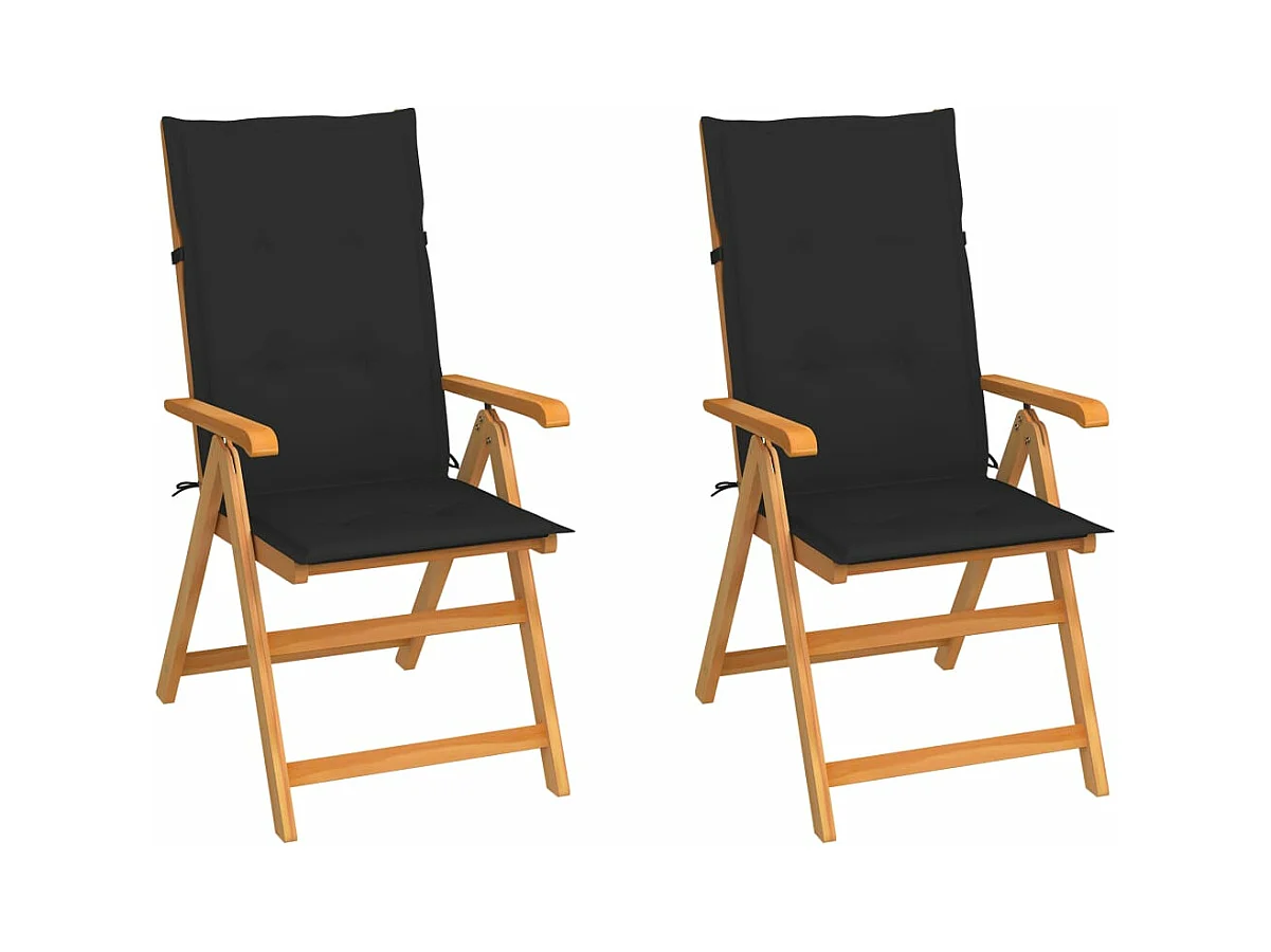 Tuinstoelen 2 st met zwarte kussens massief teakhout NL96357