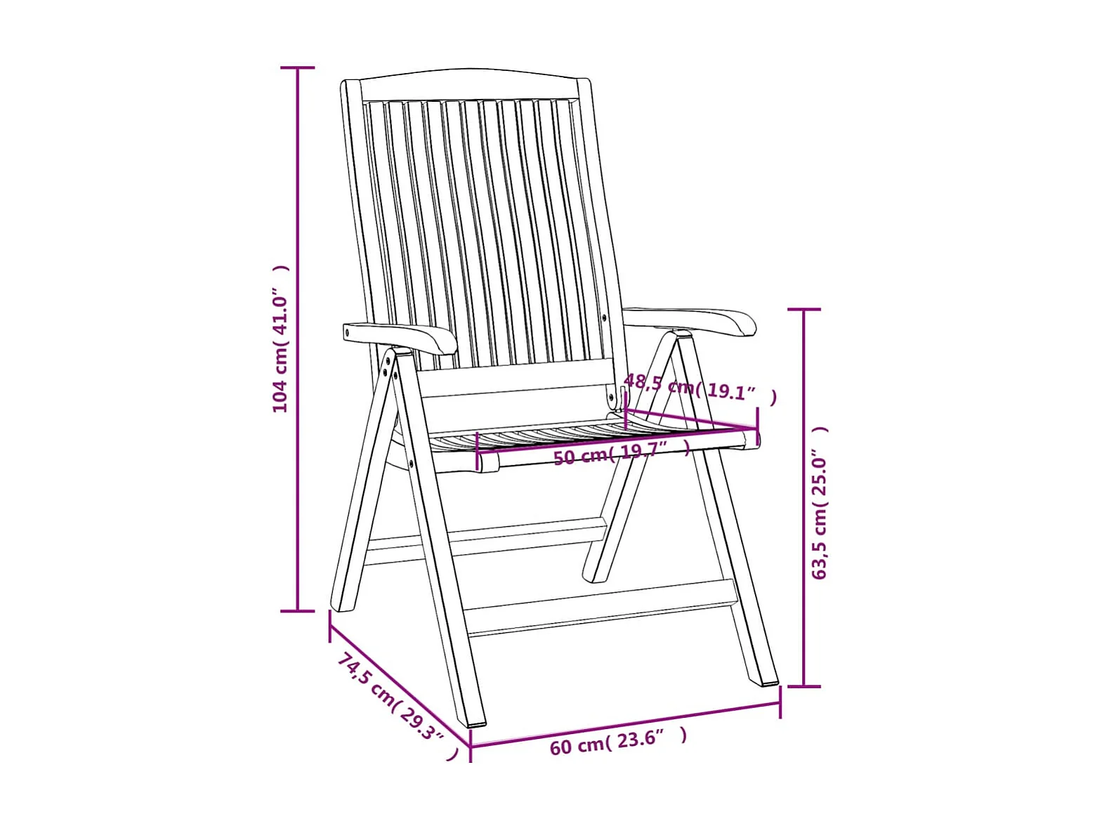 Tuinstoelen 2 st verstelbaar met kussens massief teakhout