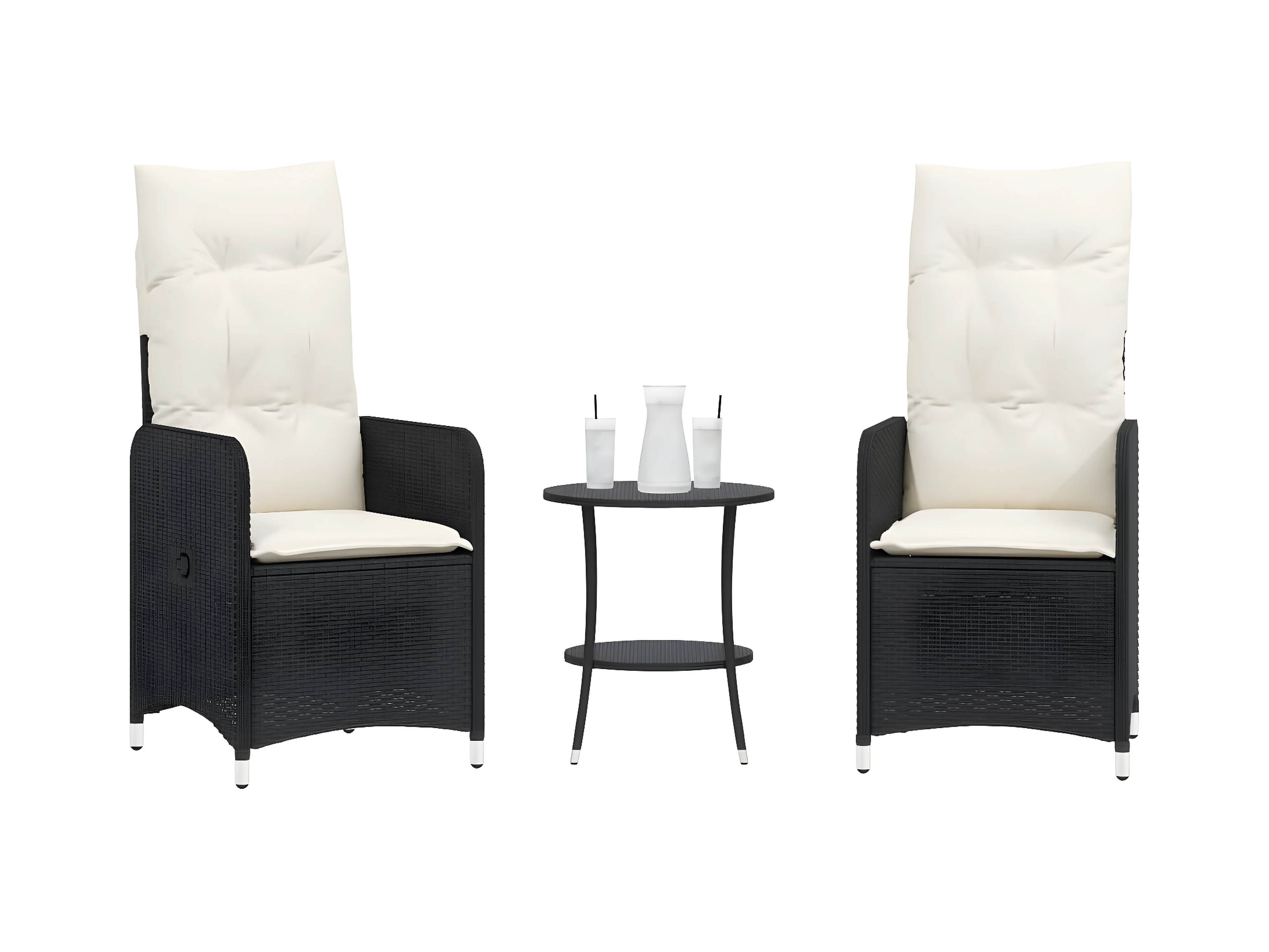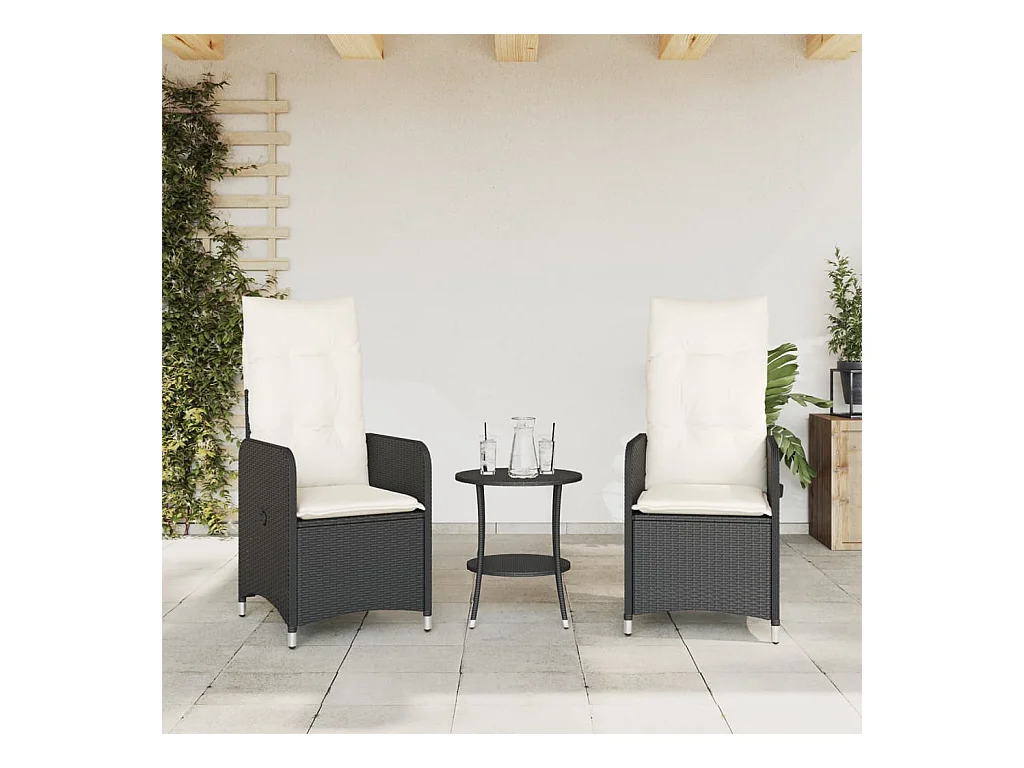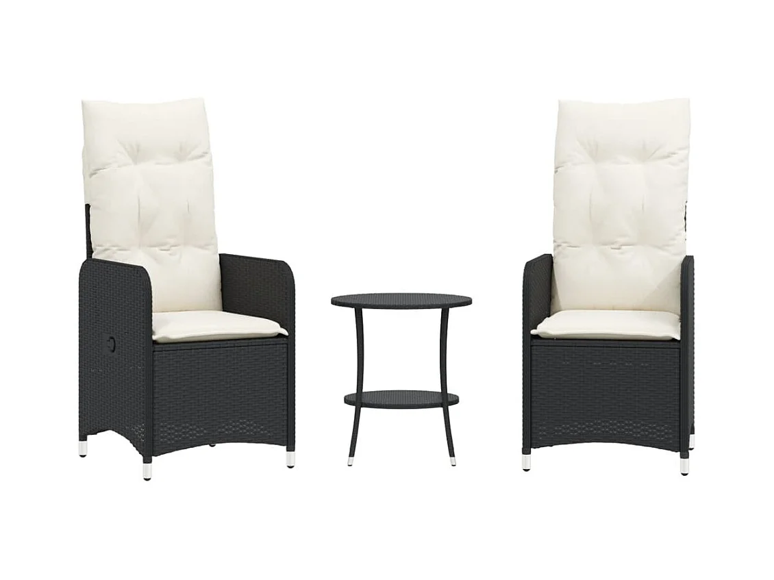 Tuinstoelen 2 st verstelbaar met tafel poly rattan zwart BE709898