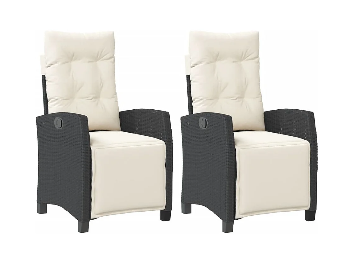 Tuinstoelen 2 st verstelbaar met kussens poly rattan zwart NL56367