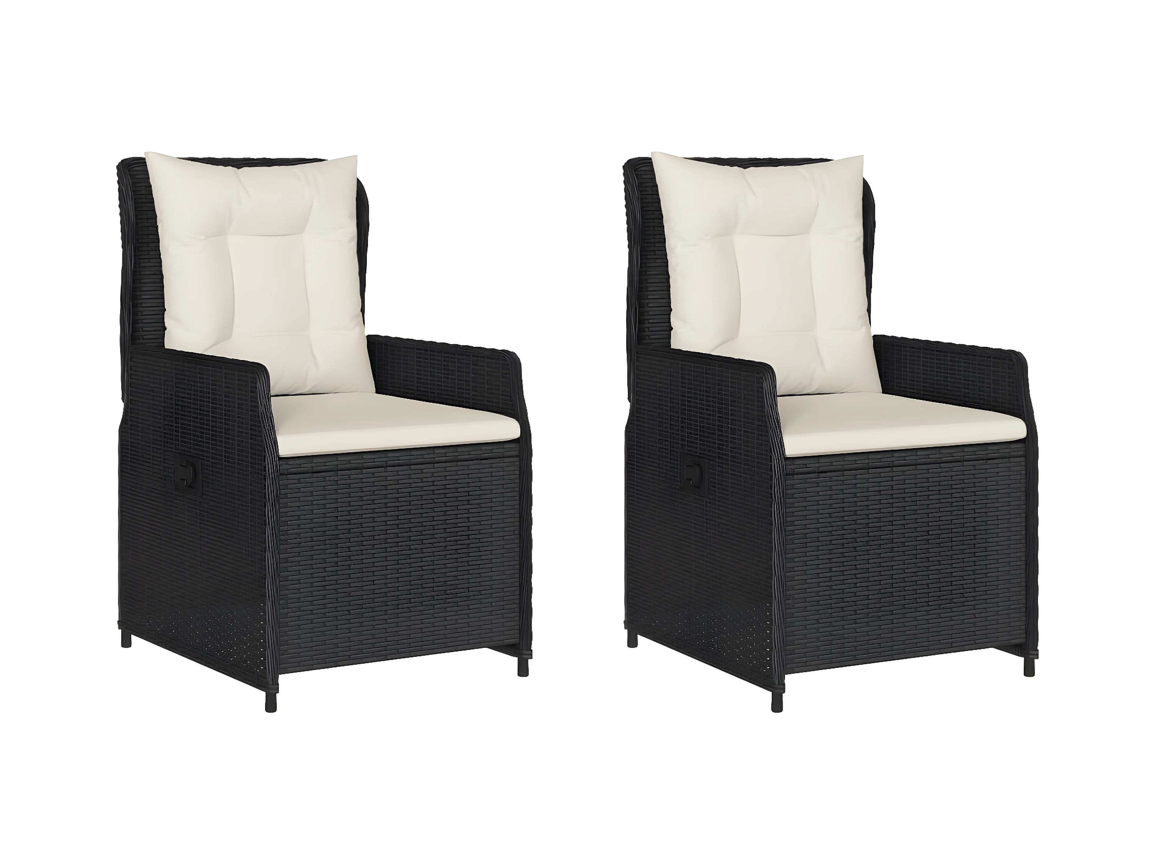 Tuinstoelen 2 st verstelbaar met kussens poly rattan zwart BE426995