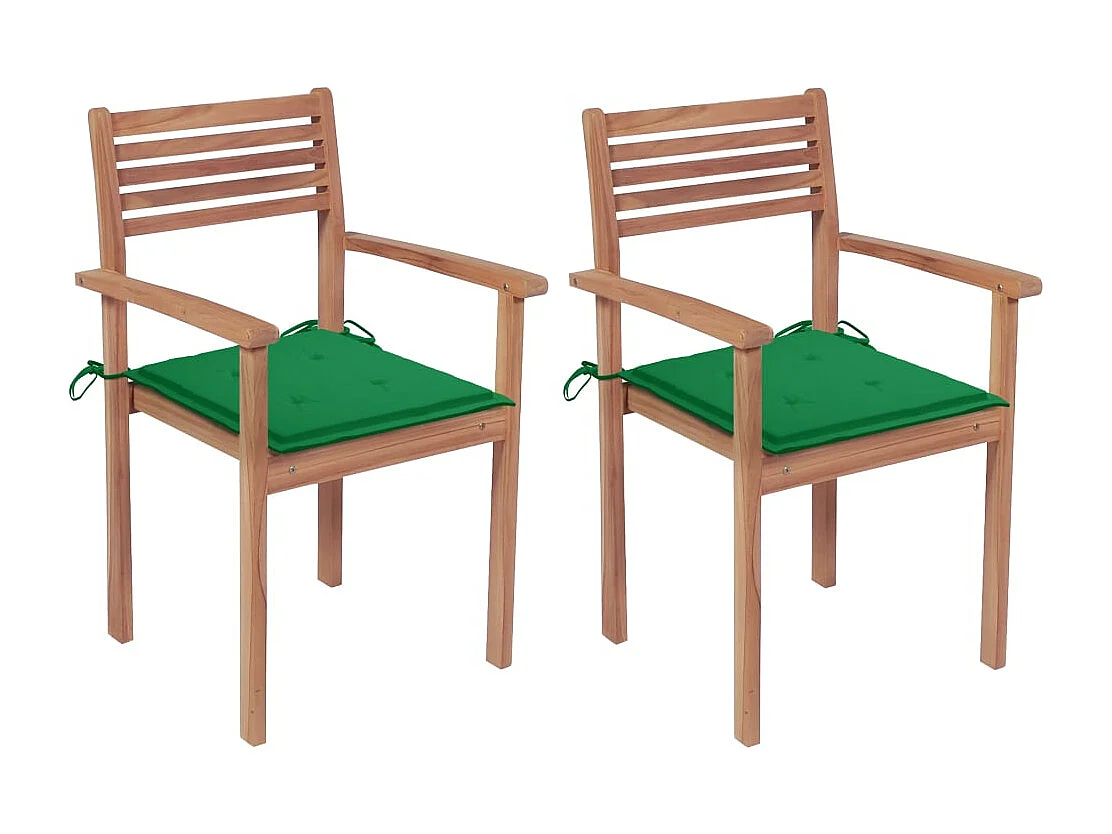 Tuinstoelen 2 stuks met groene kussens Massief teakhout