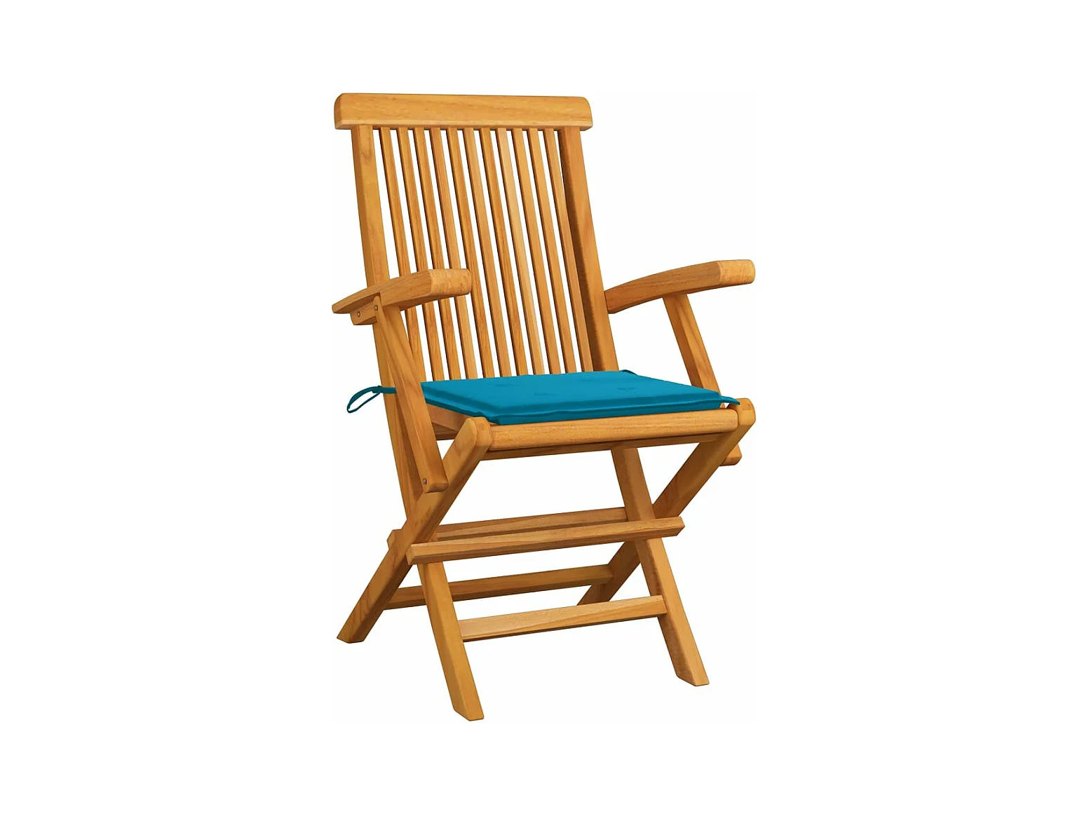 Tuinstoelen met lichtblauwe kussens 4 stuks Massief teakhout