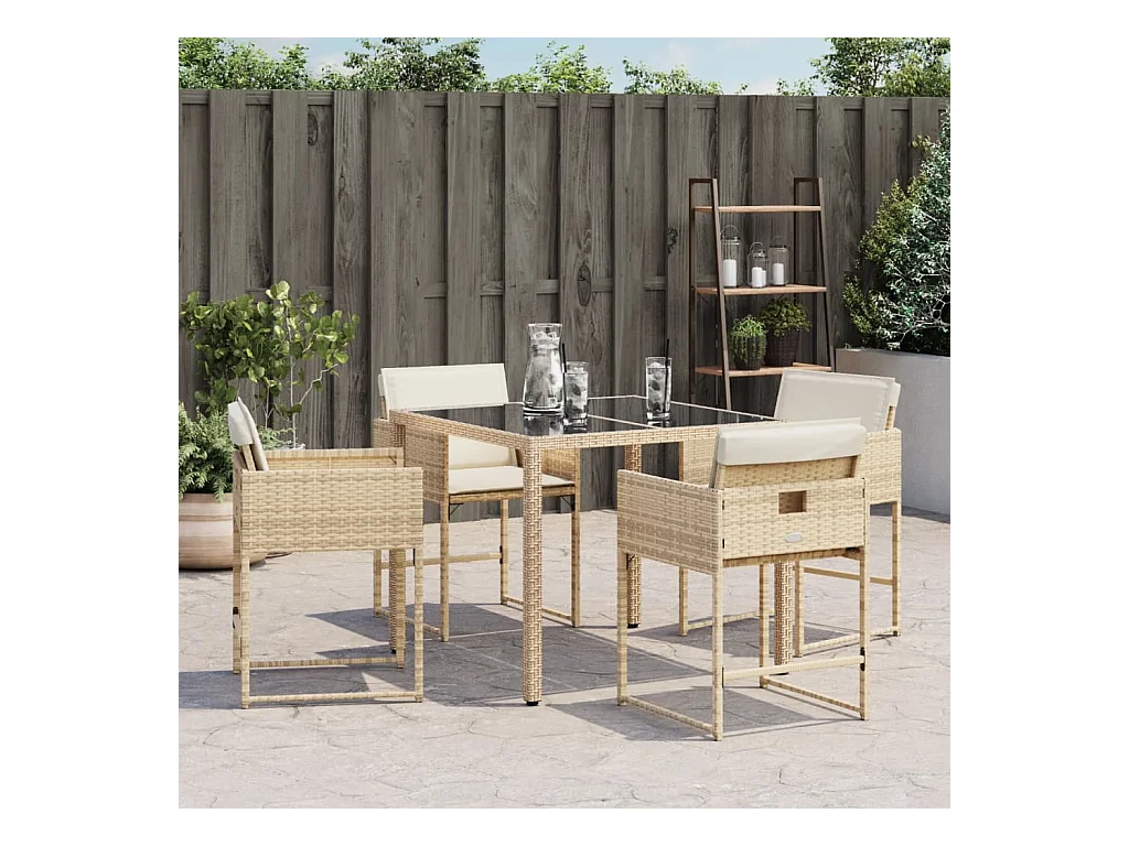 Tuinstoelen 4 stukkenmet kussens poly rattan beige