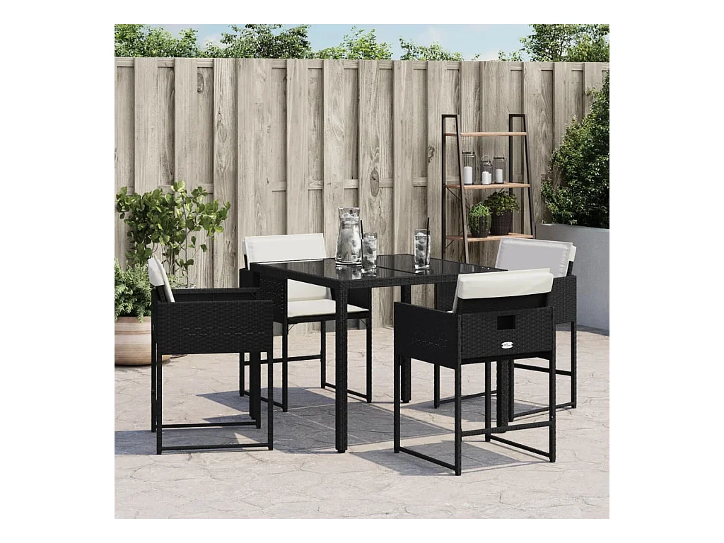 Tuinstoelen 4 stukkenmet kussens poly rattan zwart