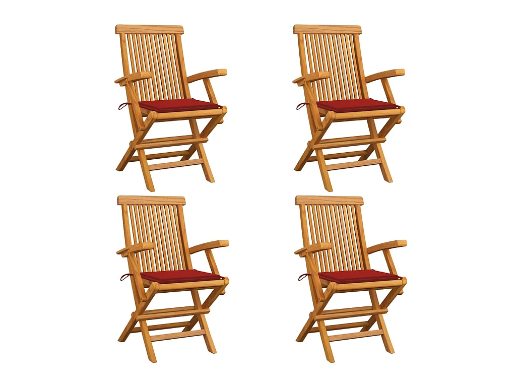 Tuinstoelen 4 st met rode kussens massief teakhout