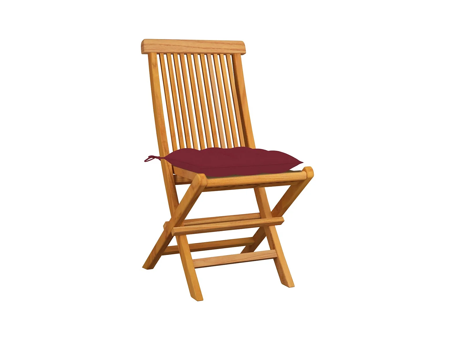 Tuinstoelen 4 st met wijnrode kussens massief teakhout BE314995