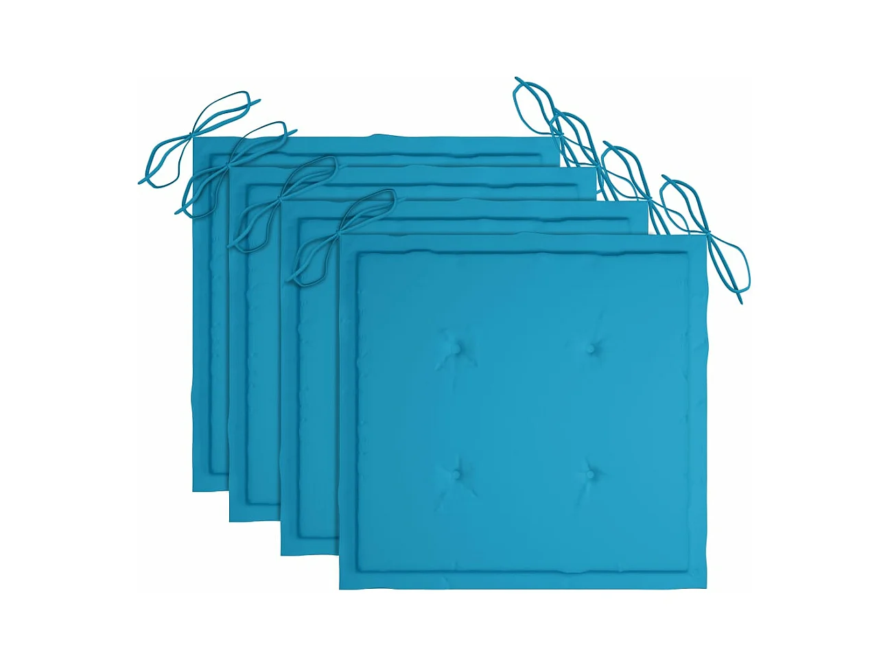 Tuinstoelen 4 stukkenmet blauwe kussens massief teakhout