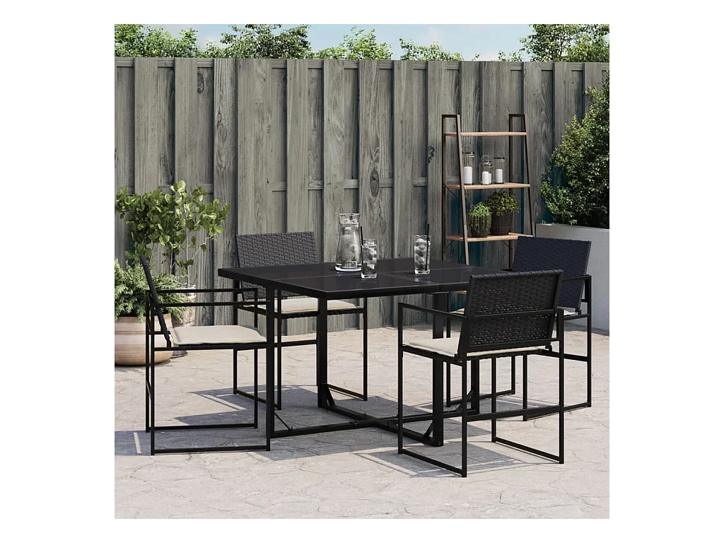 Tuinstoelen 4 stukkenmet kussens poly rattan zwart