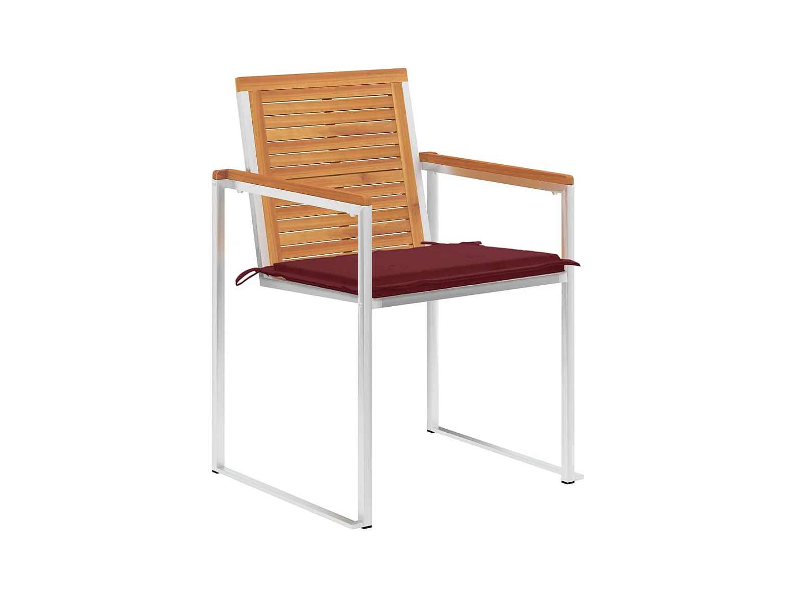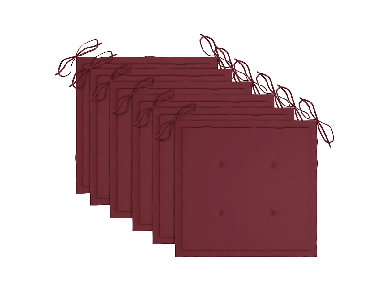 Tuinstoelen 6 st met wijnrode kussens massief teakhout
