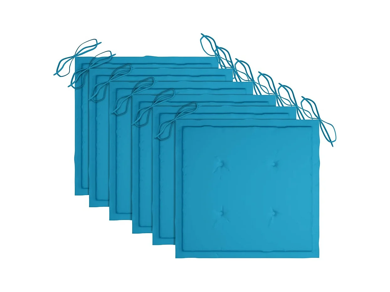 Tuinstoelen 6 st met blauwe kussens massief teakhout