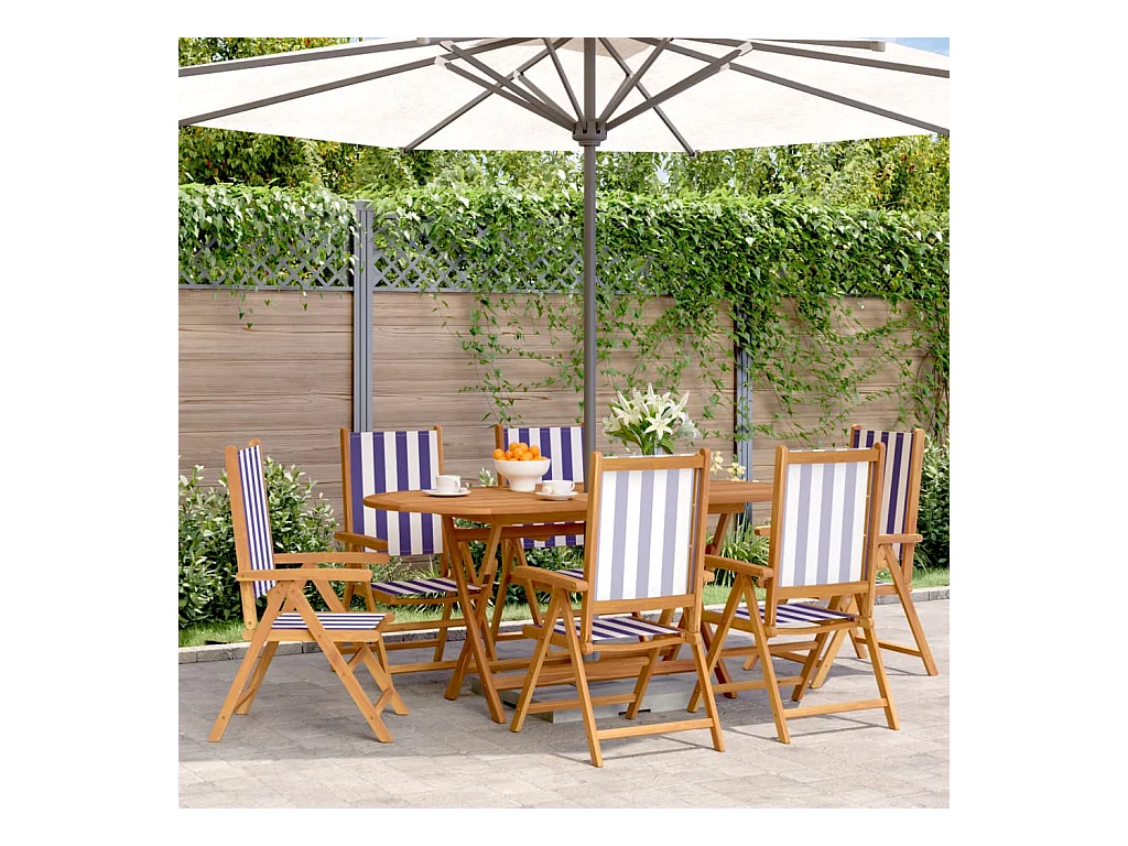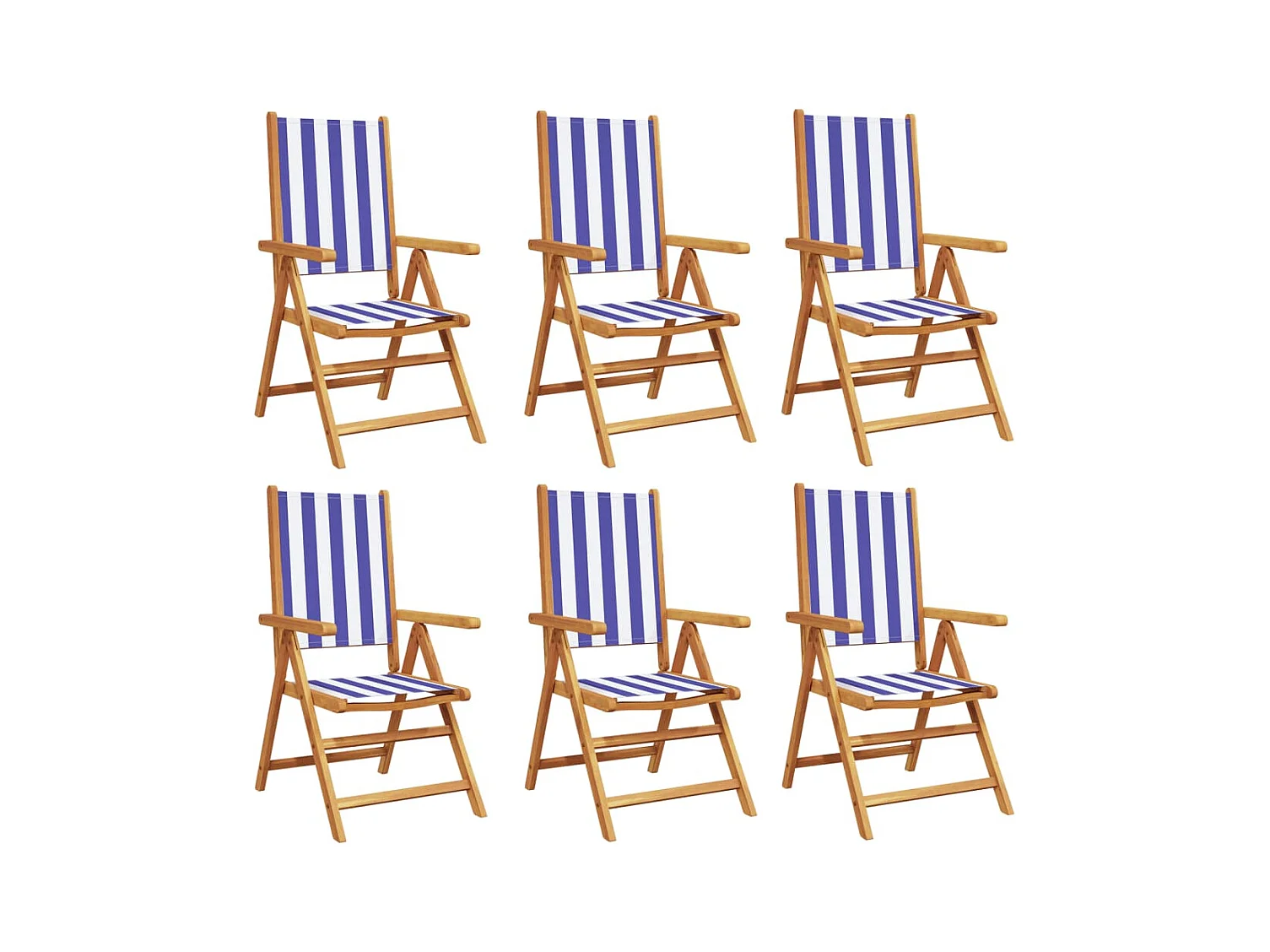Tuinstoelen 6 st verstelbaar massief hout en stof blauw en wit