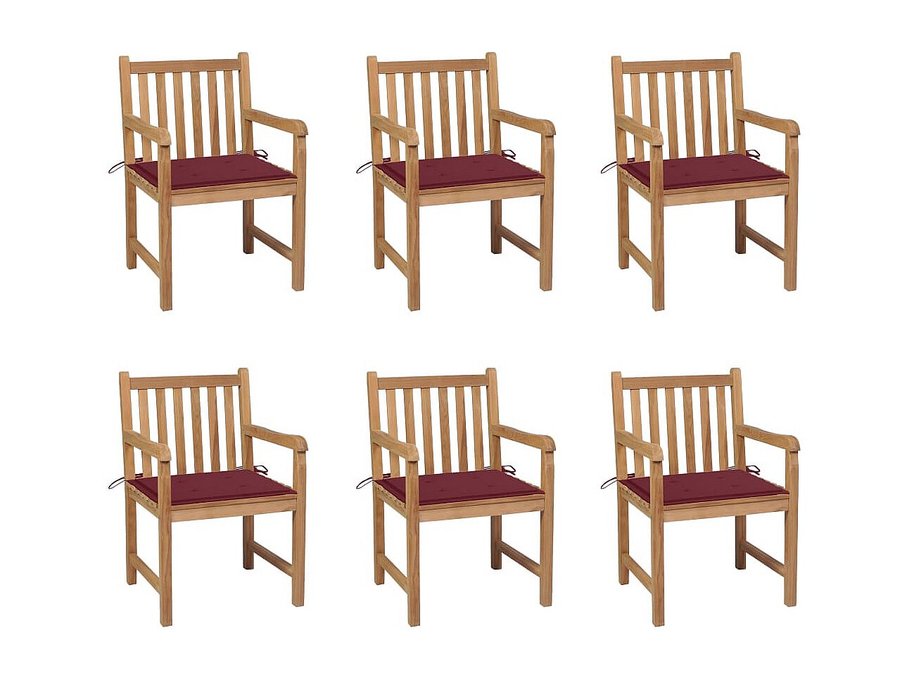 Tuinstoelen 6 stuks met bordeauxrode kussens Teakhout