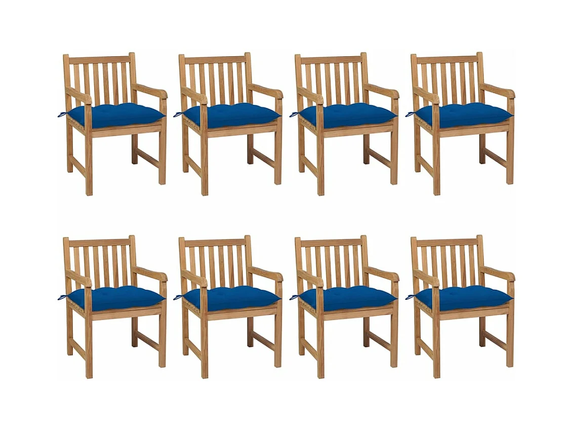 Tuinstoelen 8 stuks met blauwe kussens Massief teakhout