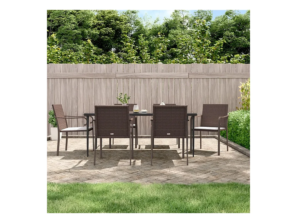 Tuinstoelen en kussens set van 6 bruin 56x59x84 cm rotan