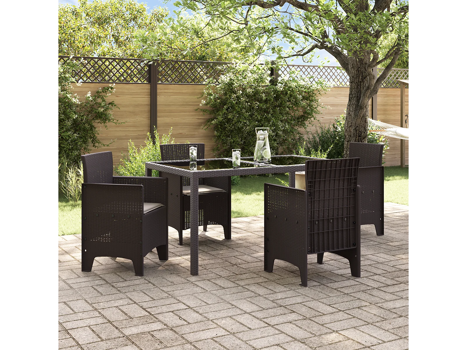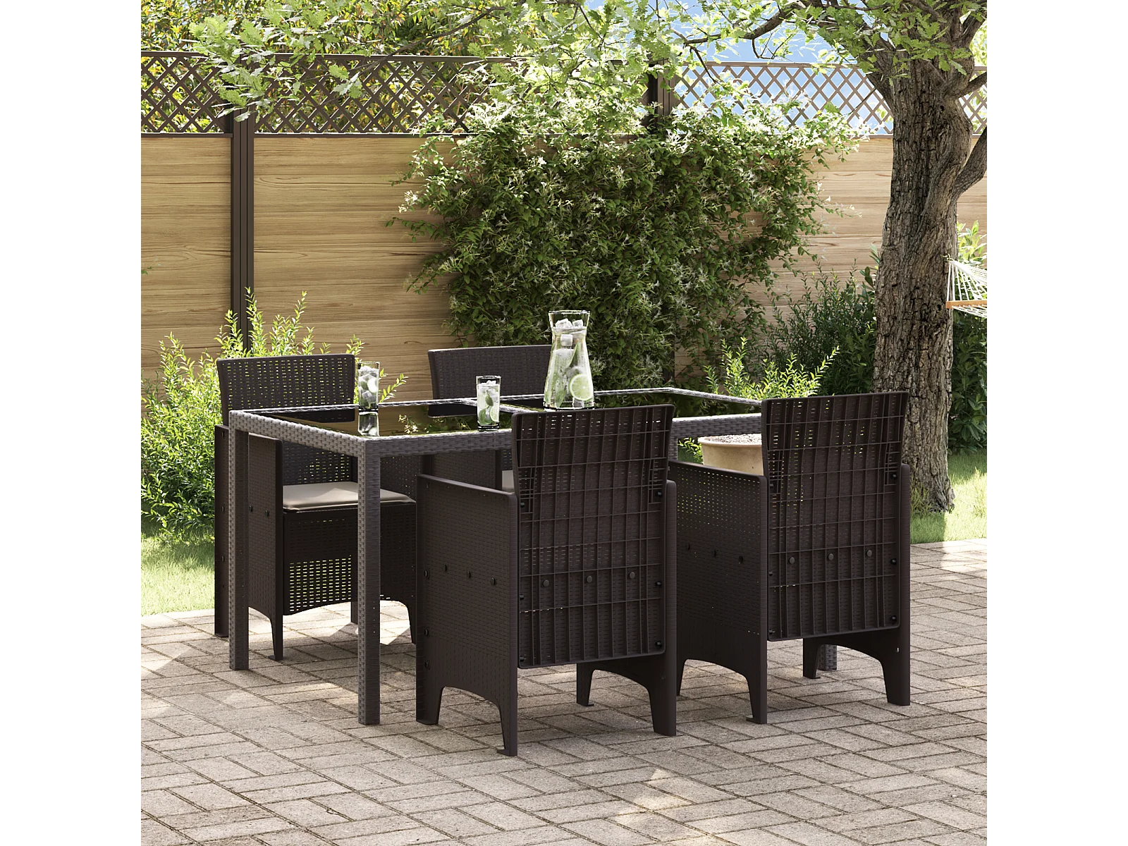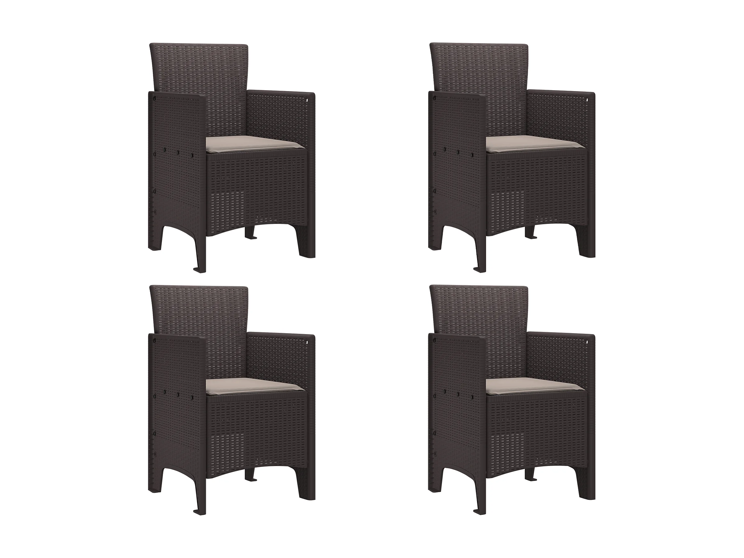 Tuinstoelen met kussens 4 stuks Bruin Poly Rotan