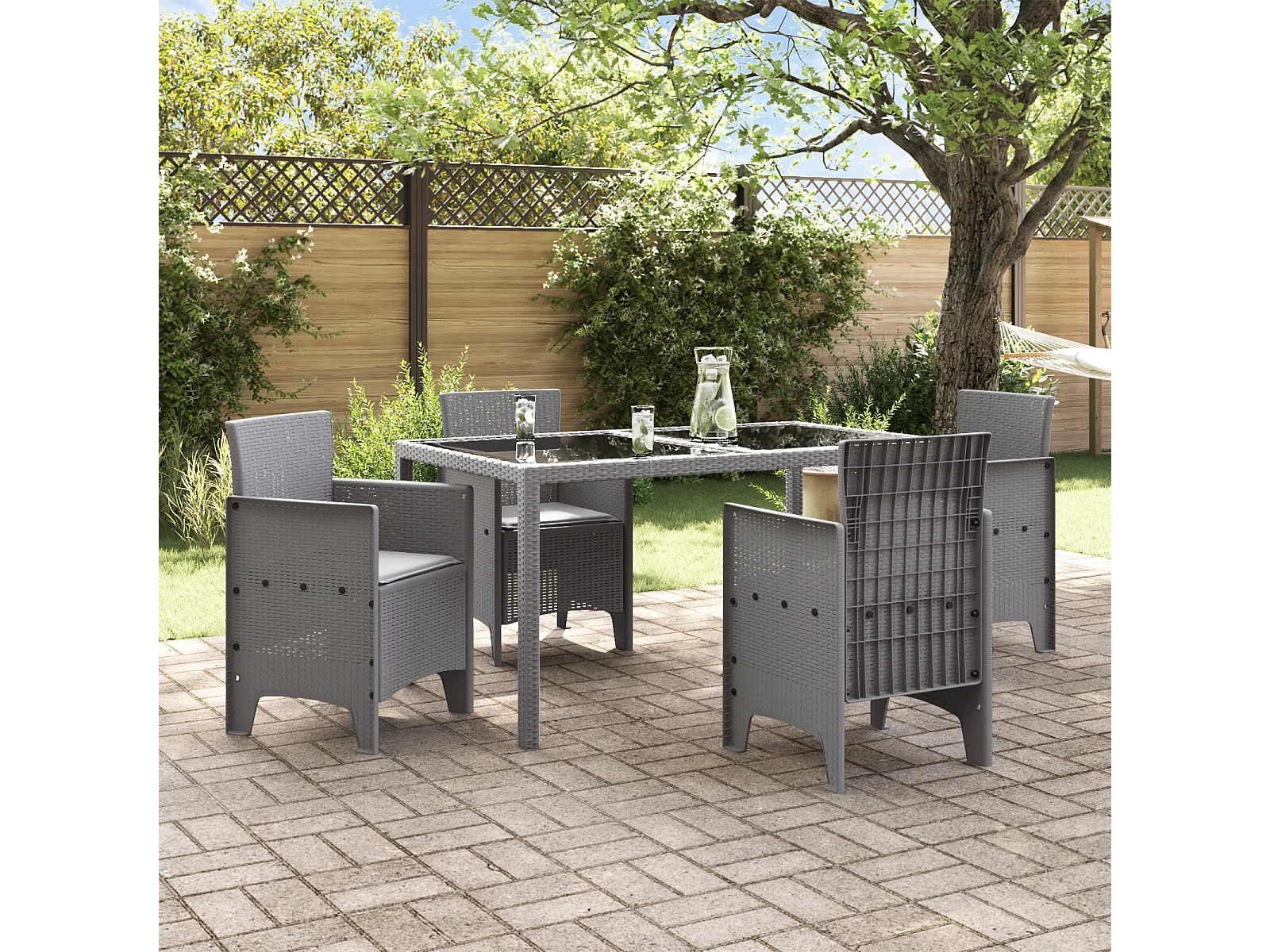 Tuinstoelen met kussens 4 stuks lichtgrijs polyrotan