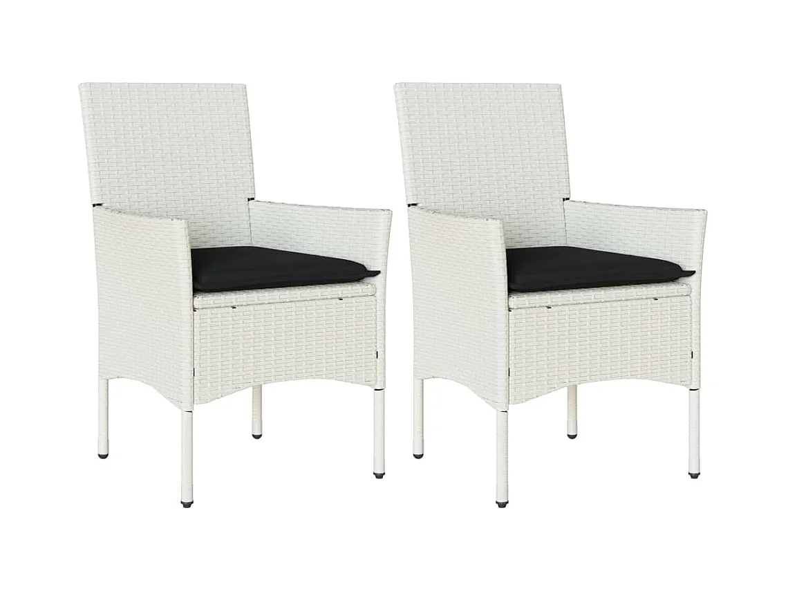 Tuinstoelen met kussens, set van 2, wit, geweven hars