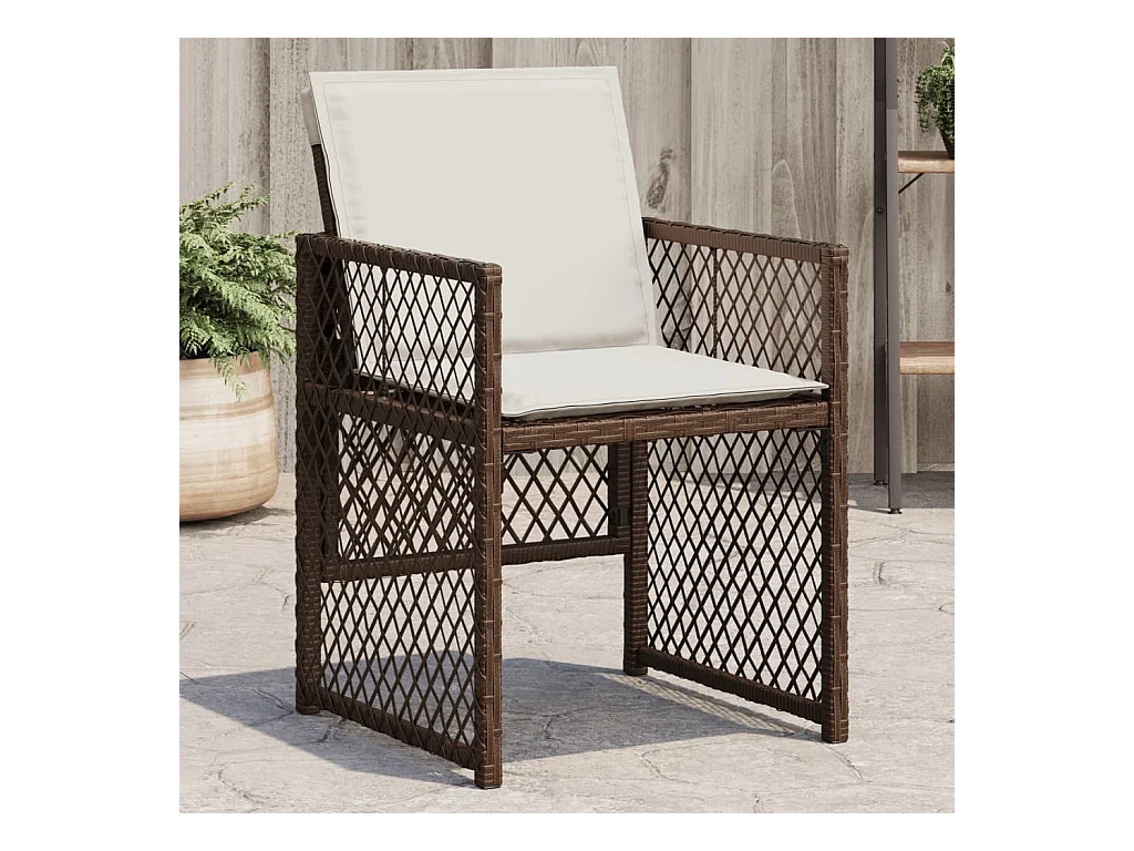 Tuinstoelen met kussens, set van 4, bruin, gevlochten hars