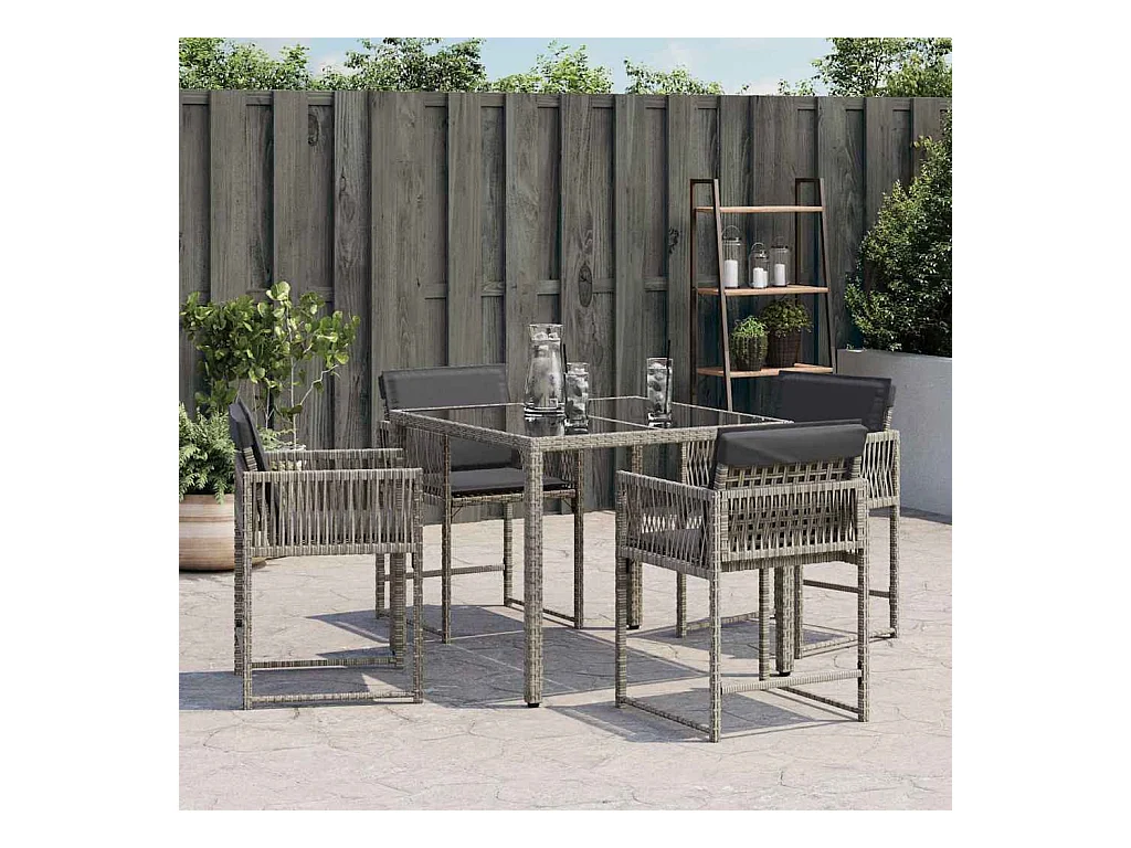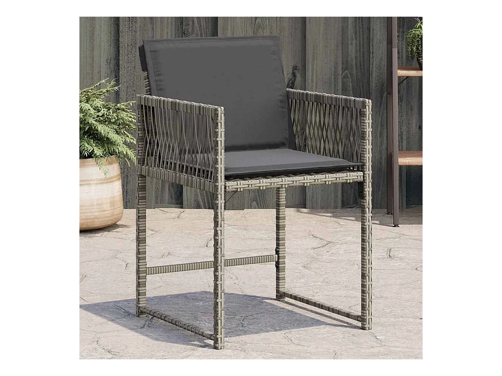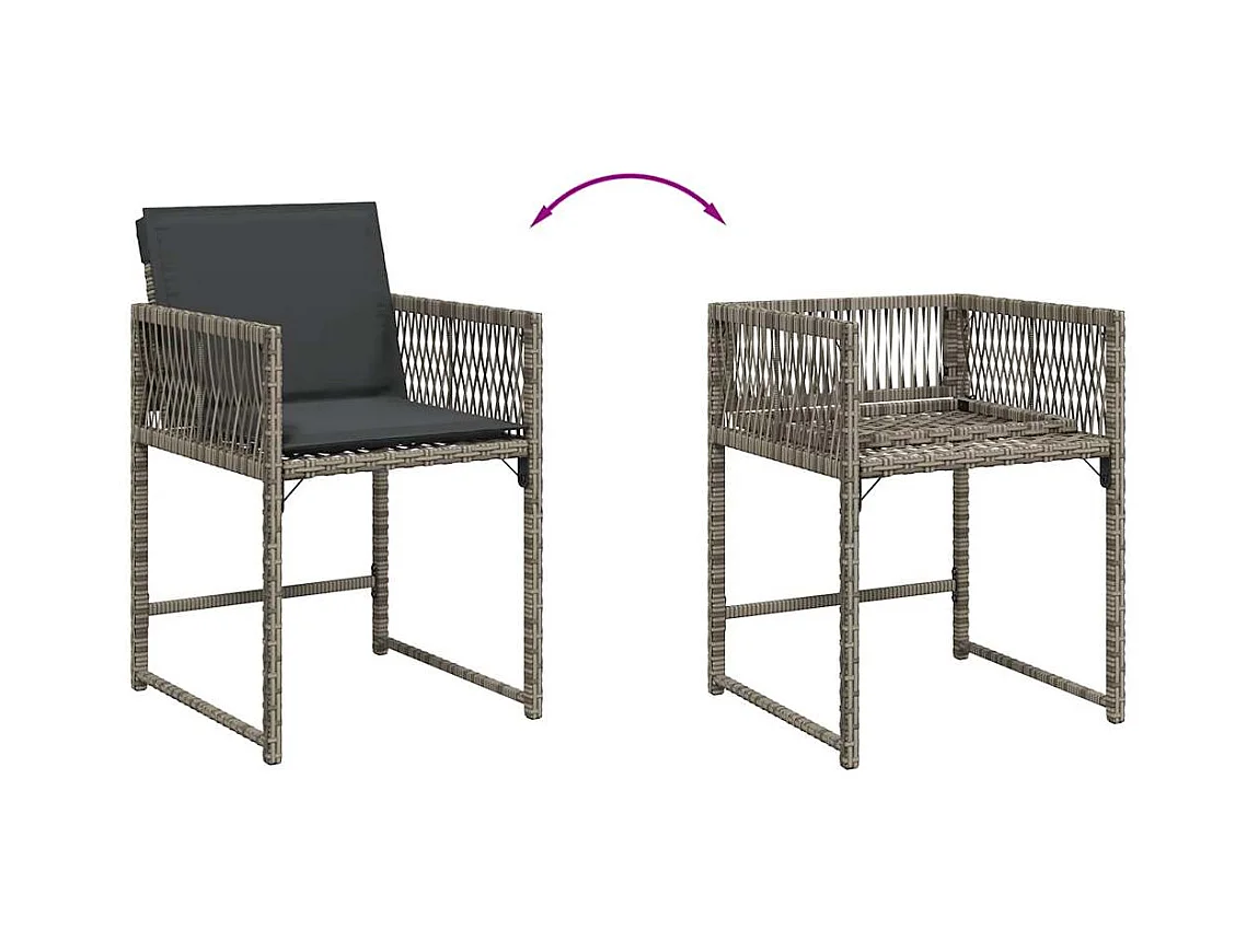 Tuinstoelen met kussens, set van 4, grijs, geweven hars
