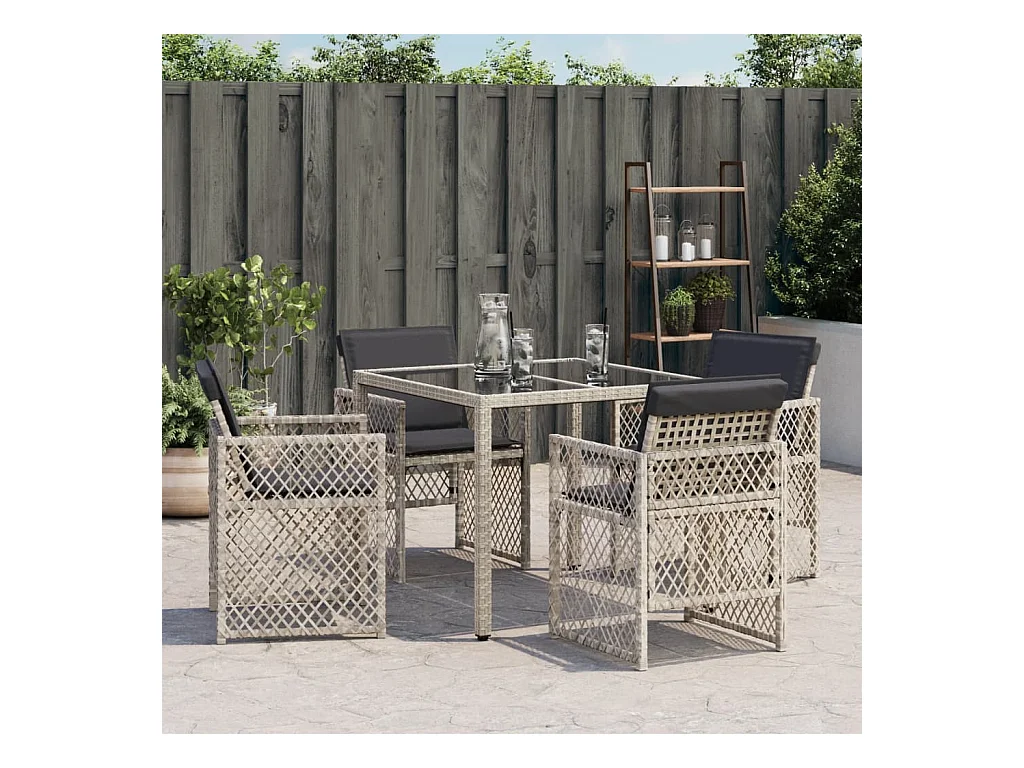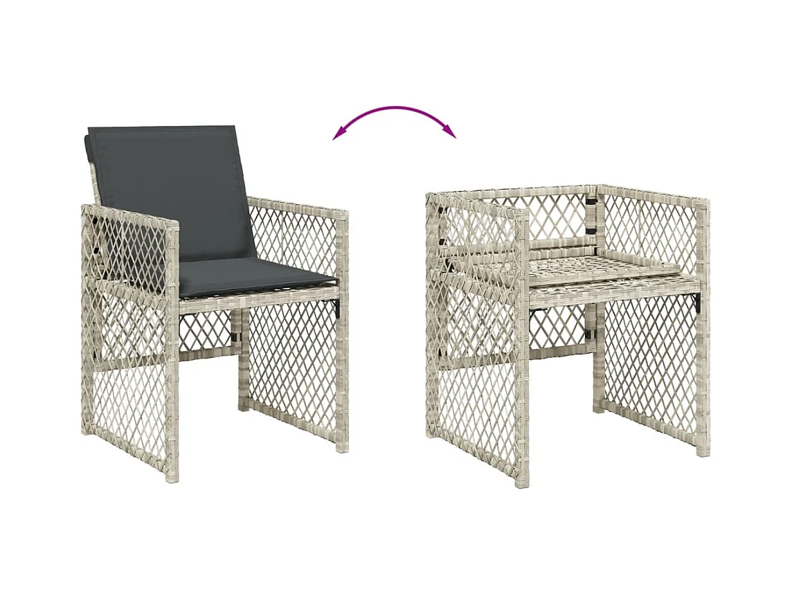 Tuinstoelen met kussens, set van 4, grijs, geweven hars