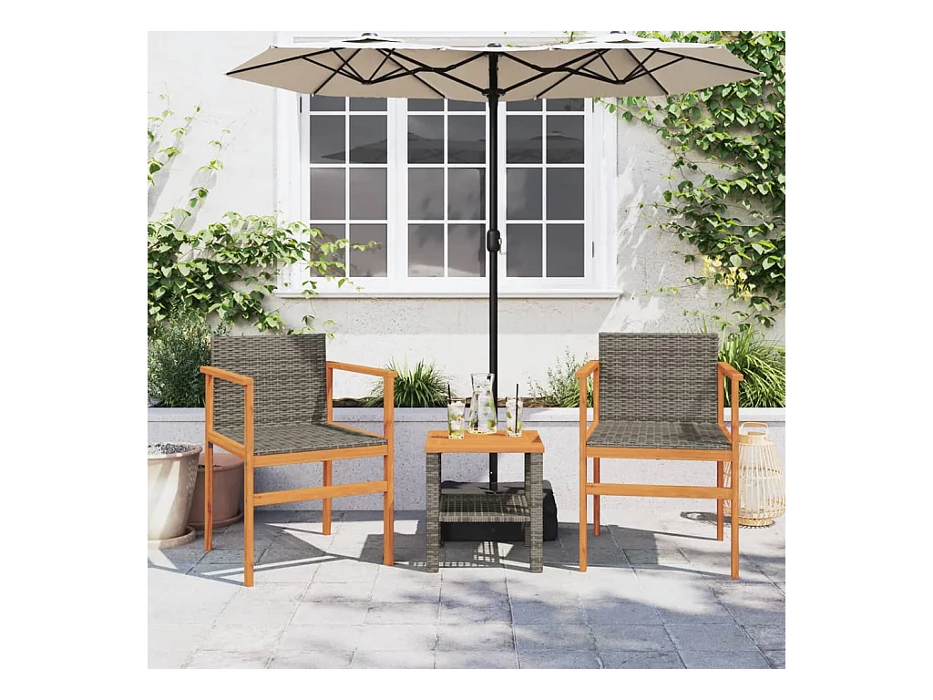 Tuinstoelenset van 2 grijs geweven hars en massief hout