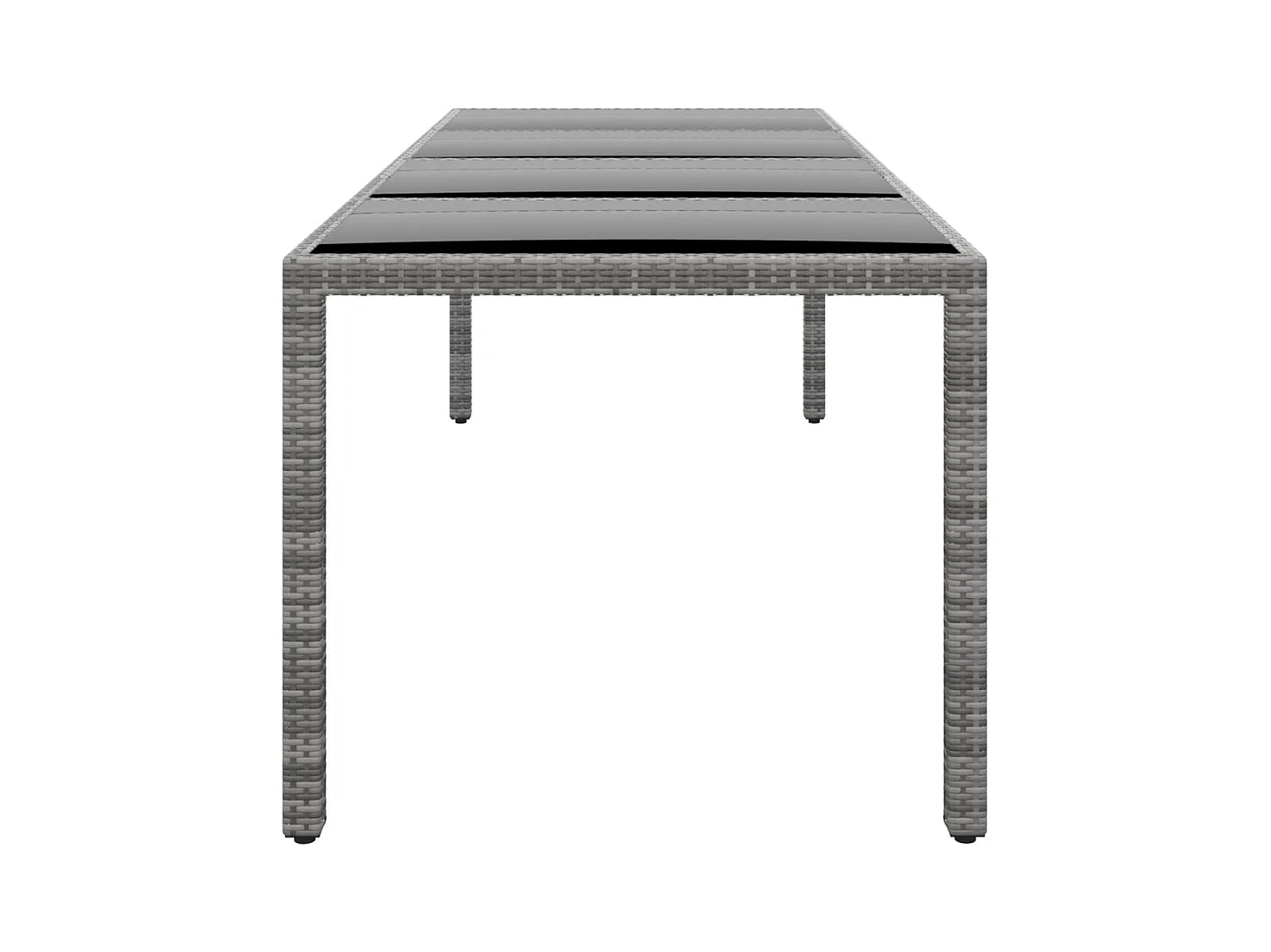Tuintafel 250x100x75 cm gehard glas en poly rattan grijs