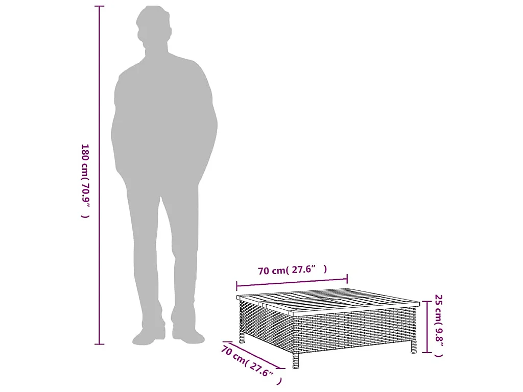 Tuintafel 70x70x25 cm poly rattan en acaciahout zwart
