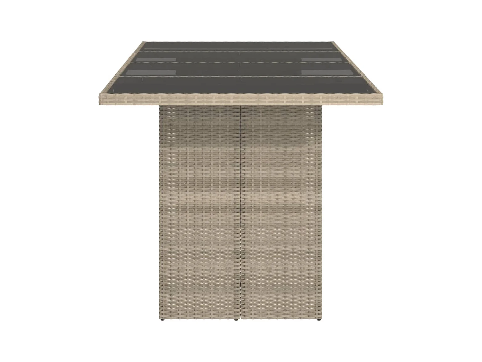 Tuintafel met glazen blad 190x80x74 cm poly rattan lichtgrijs