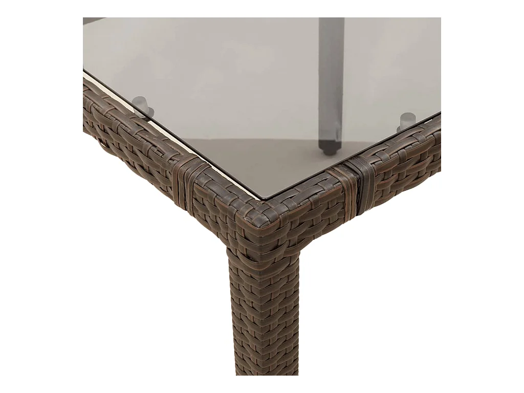 Tuintafel met glazen blad 90x90x75 cm poly rattan bruin