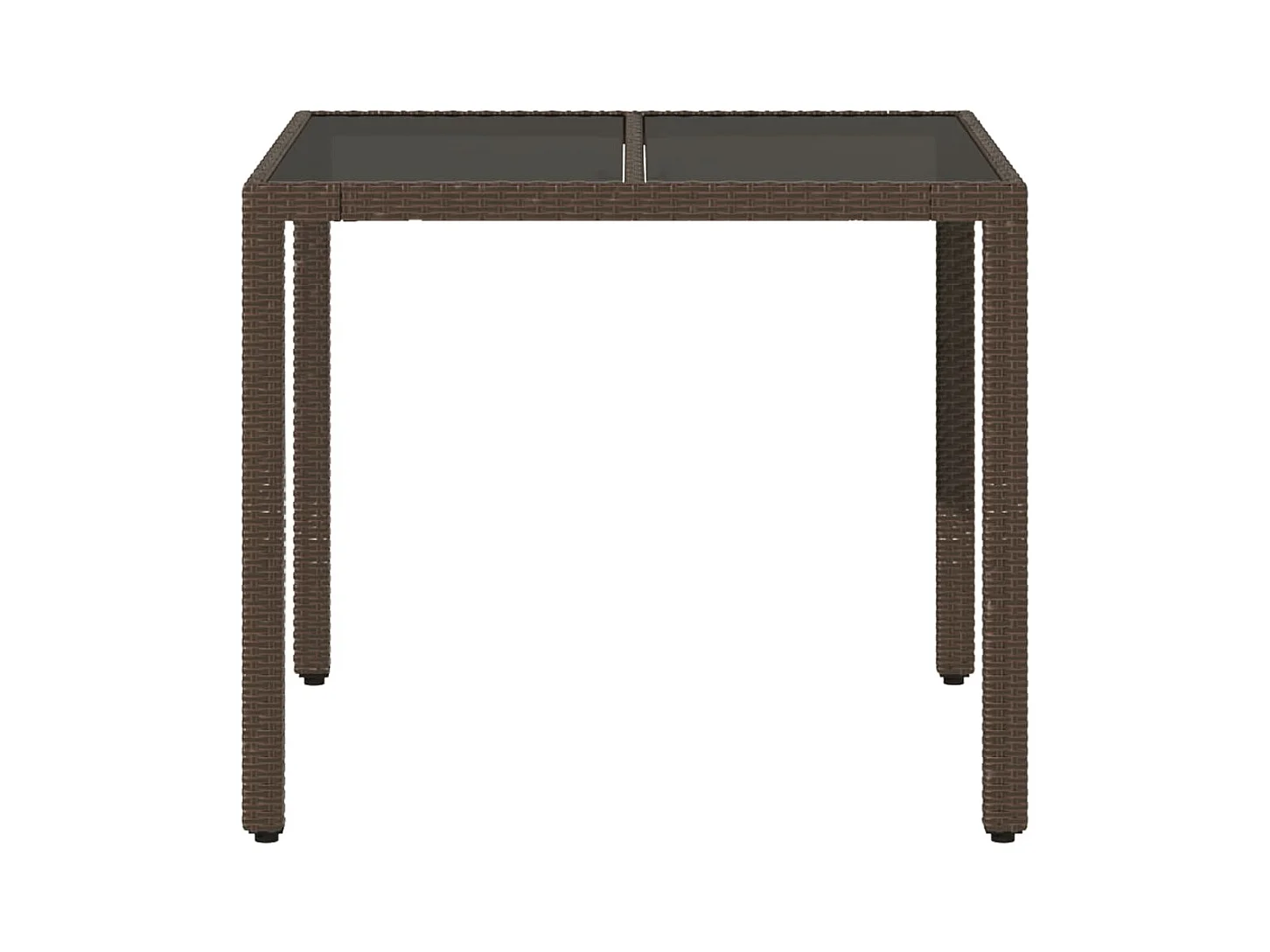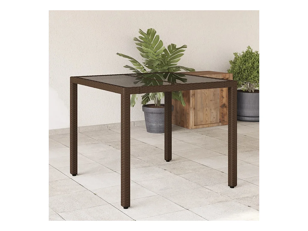 Tuintafel met glazen blad 90x90x75 cm poly rattan bruin