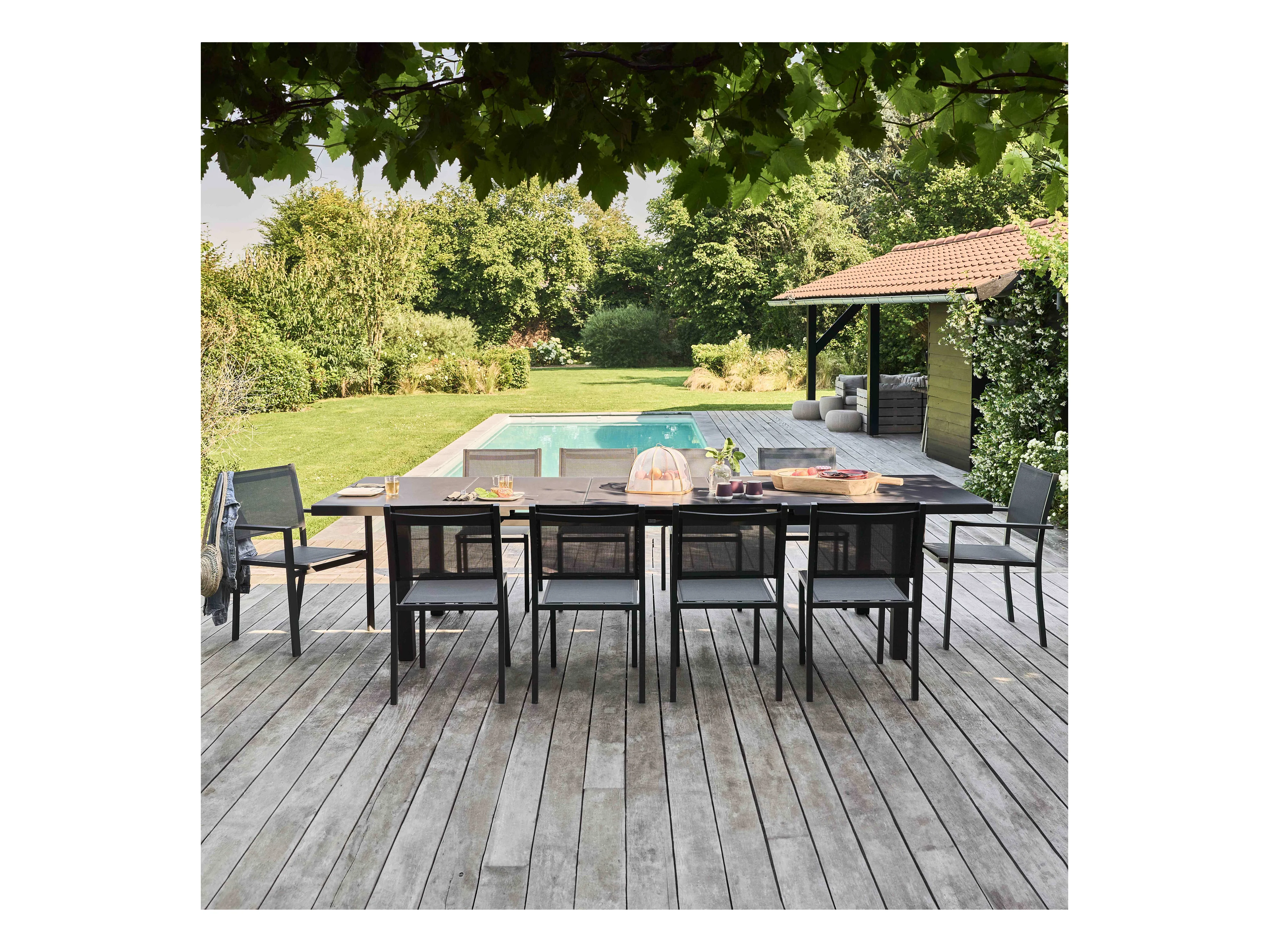 Tafel Aluminium en houten effect blad voor 10 personen LAGOS Donkergrijs